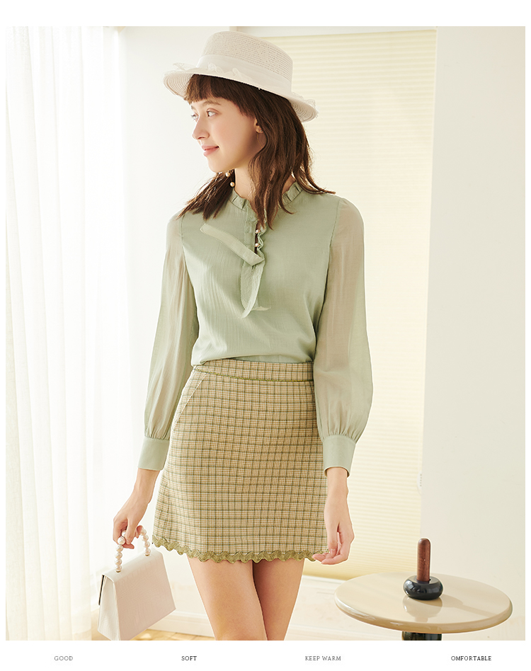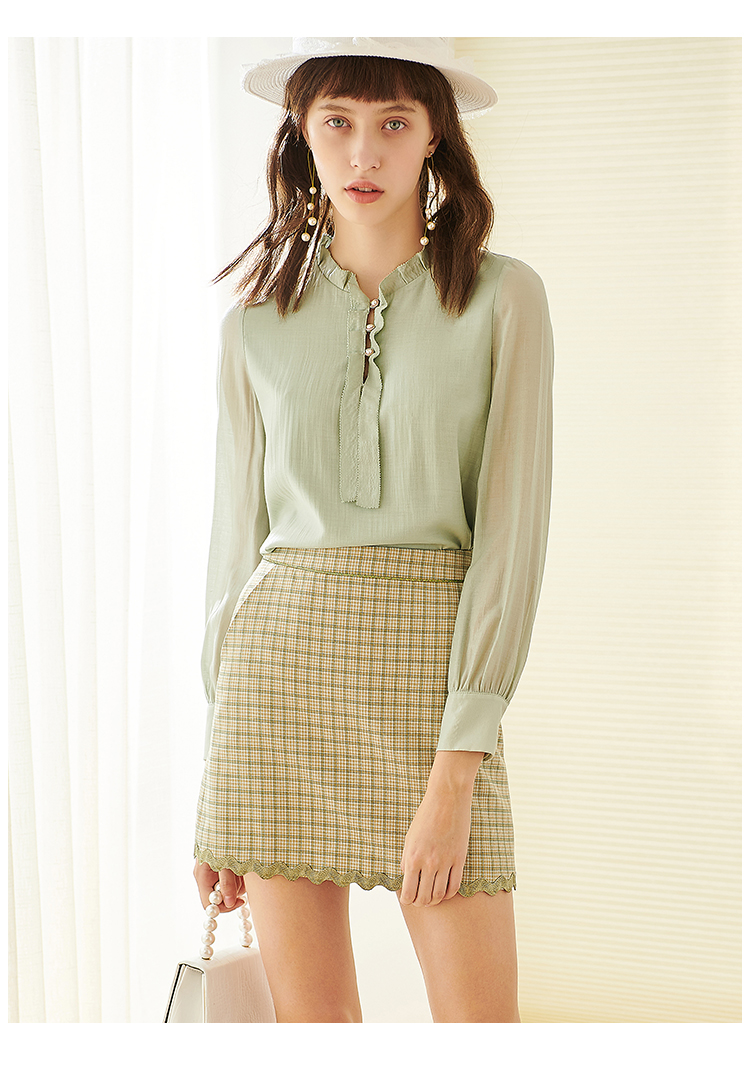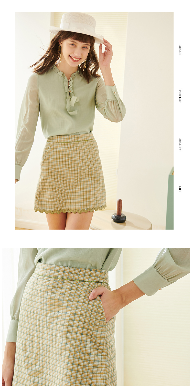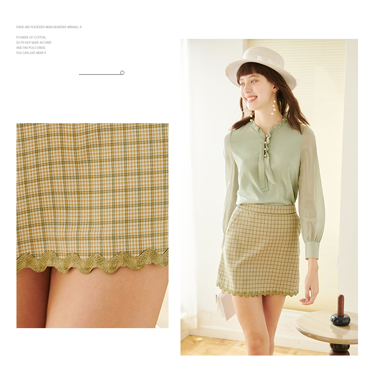 欧芮儿春新款高腰显瘦格子半身裙女不规则短裙洋气包臀裙