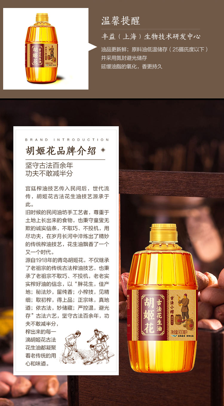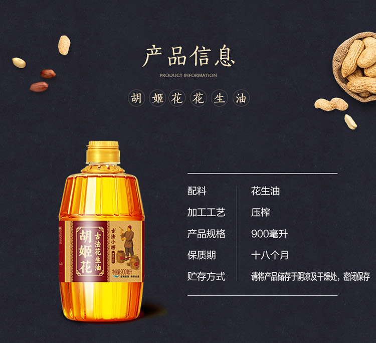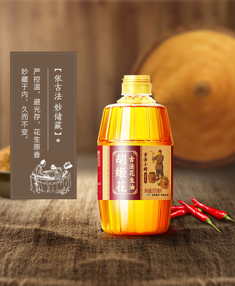 胡姬花 食用油 压榨 古法小榨 花生油 900ml