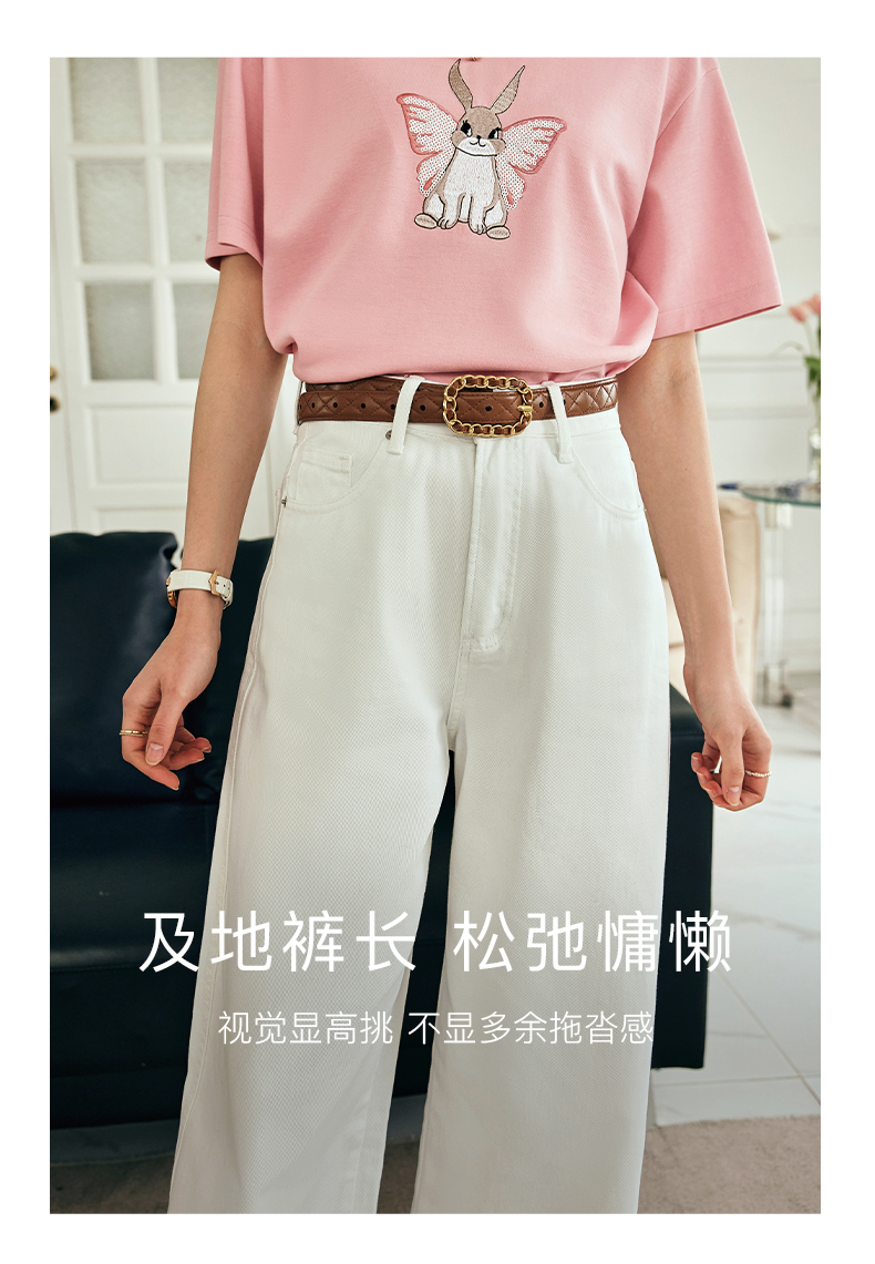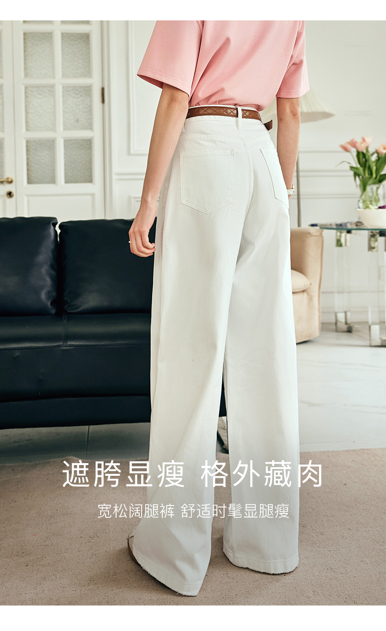 OLrain欧芮儿法式白色牛仔裤女夏季2023新款高腰宽松慵懒阔腿长裤