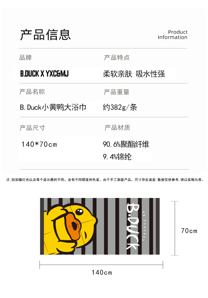 B.Duck小黄鸭超细纤维大浴巾140*70cm 212
