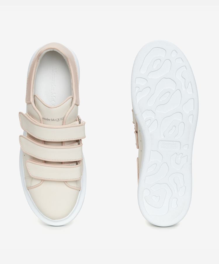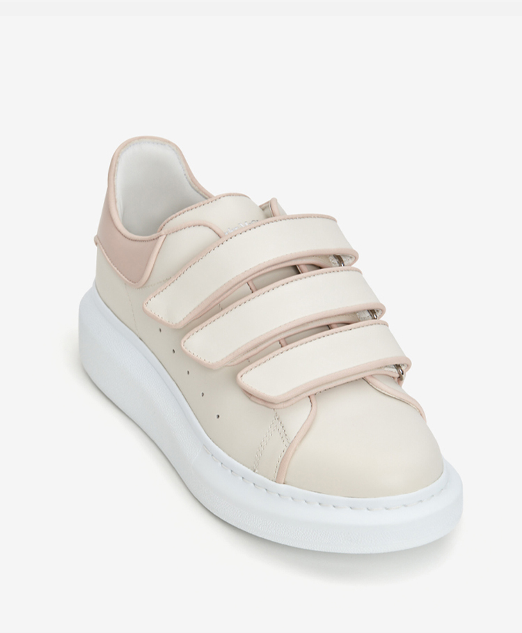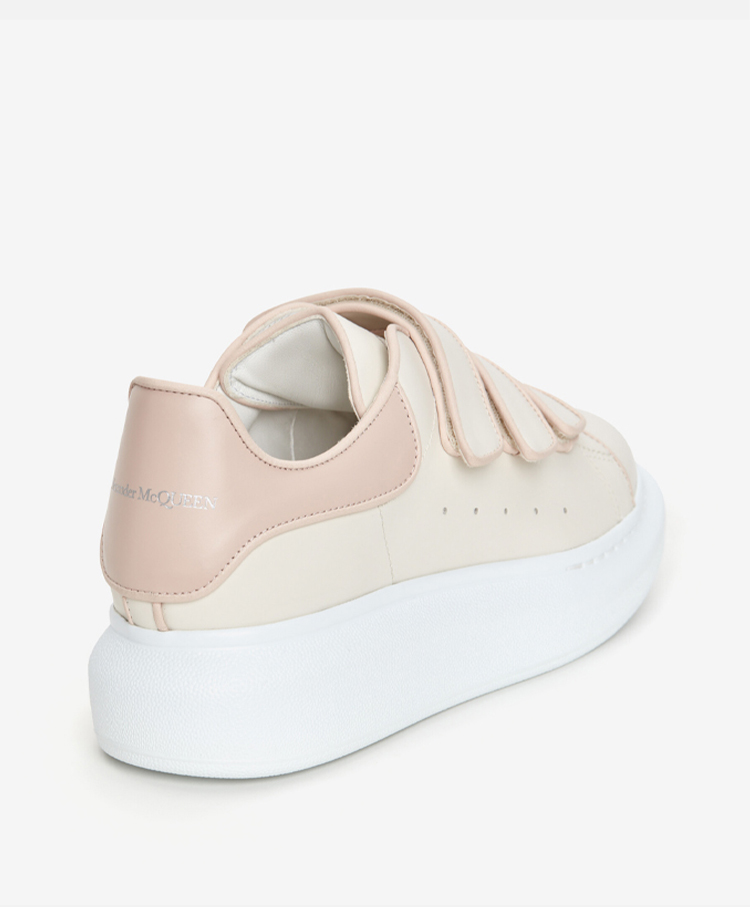ALEXANDER MCQUEEN 亚历山大.麦昆 女士粉尾阔型三绑带休闲运动鞋 白色 721410 WHJE5 8705
