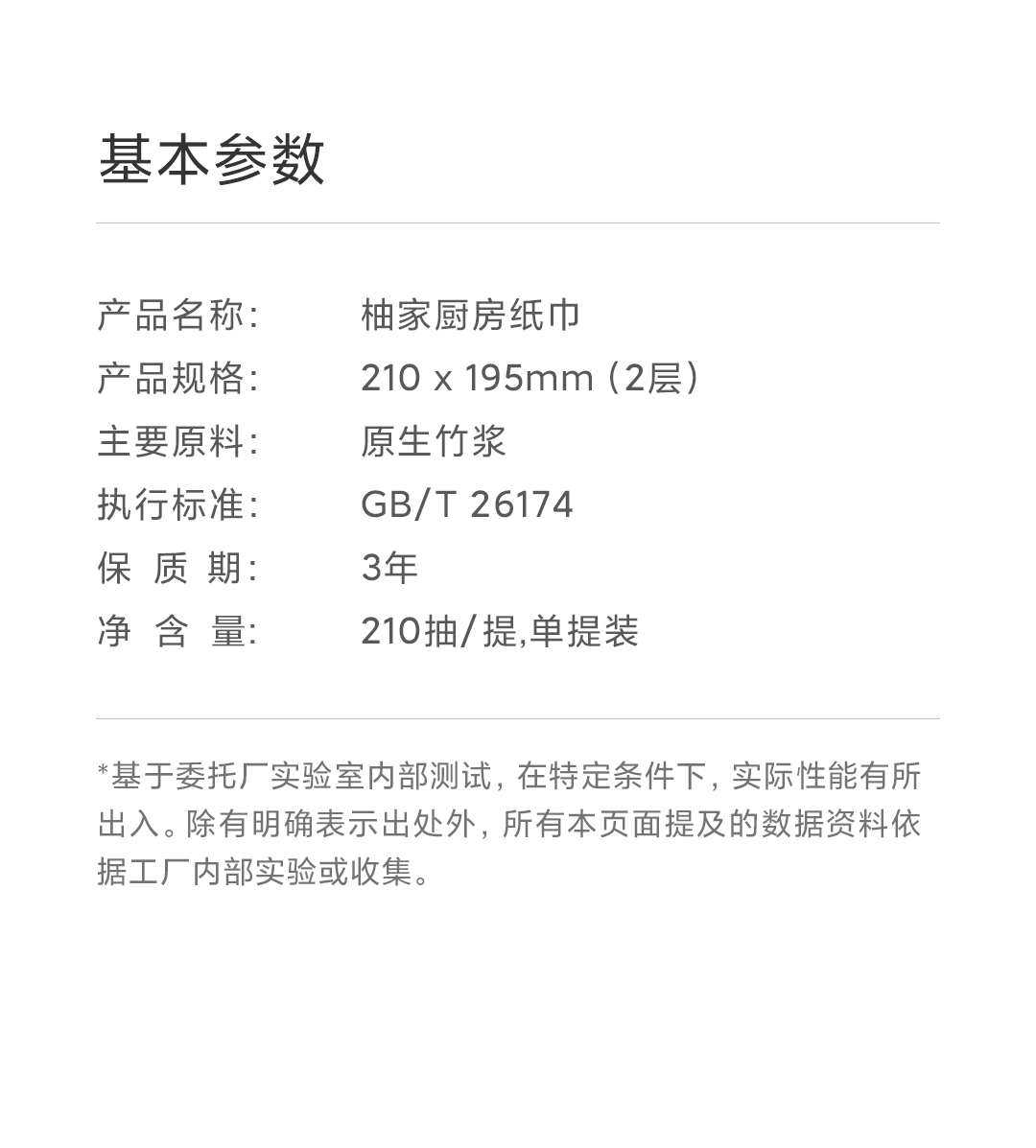 柚家厨房纸巾(壁挂式)2层 210抽/提 1提装453678