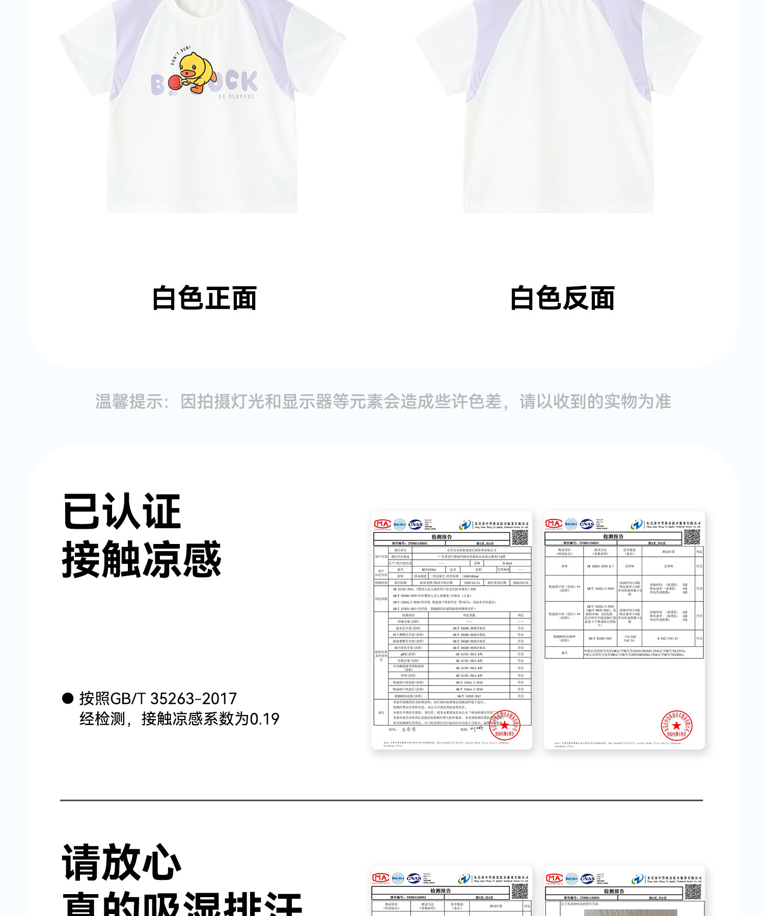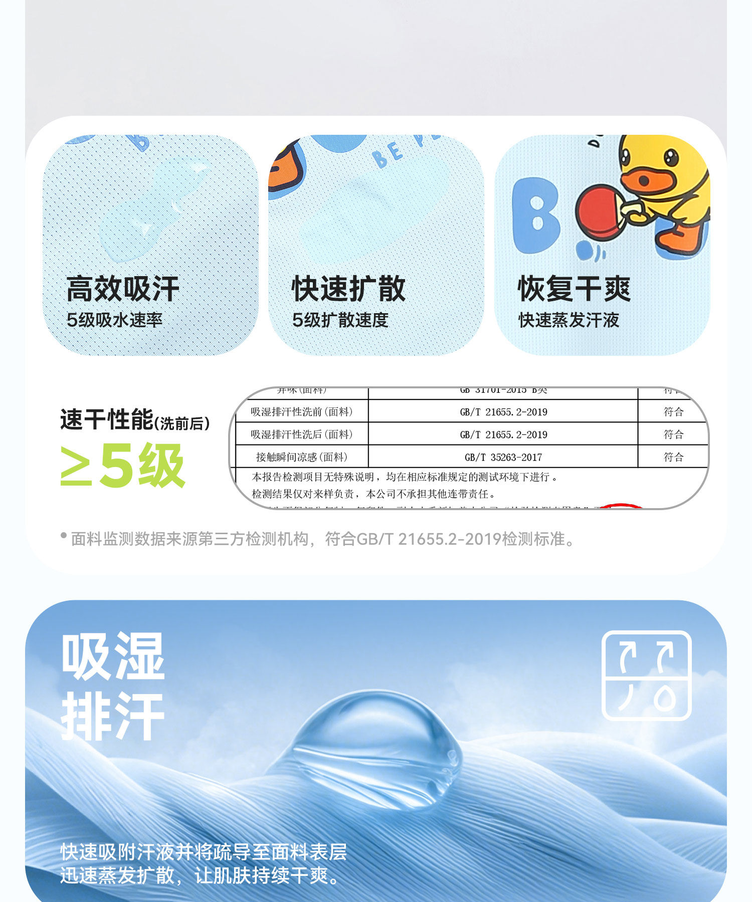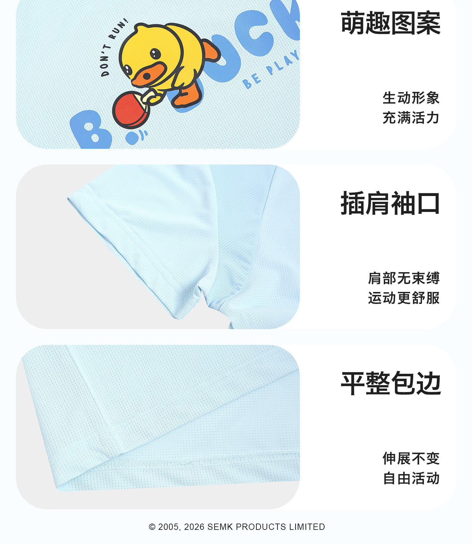 [冰感速干]bduck小黄鸭童装男童短袖夏季透气上衣儿童半袖110-160 BF2701045