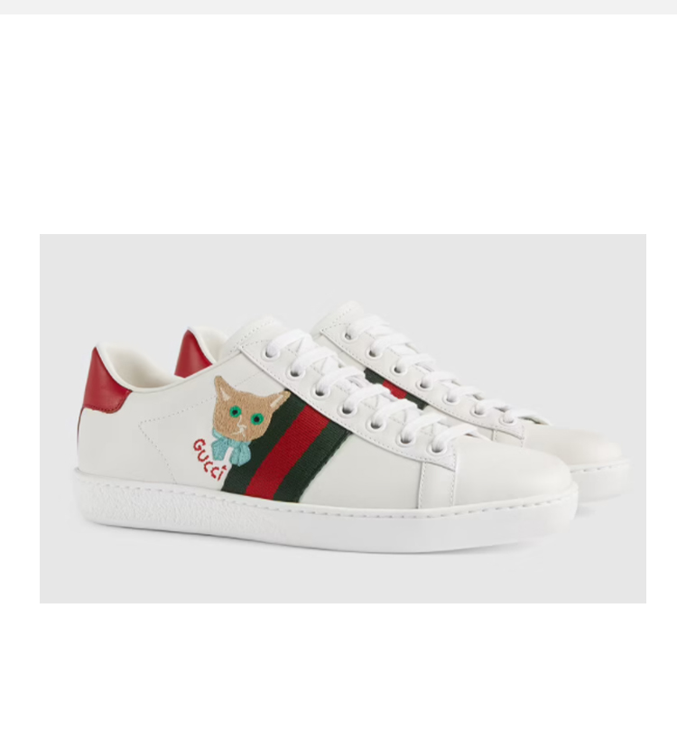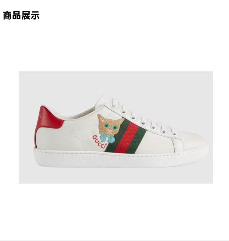 GUCCI 古驰 Ace系列女士猫咪刺绣运动鞋 女士休闲鞋 白色 664142 1XG60 9065