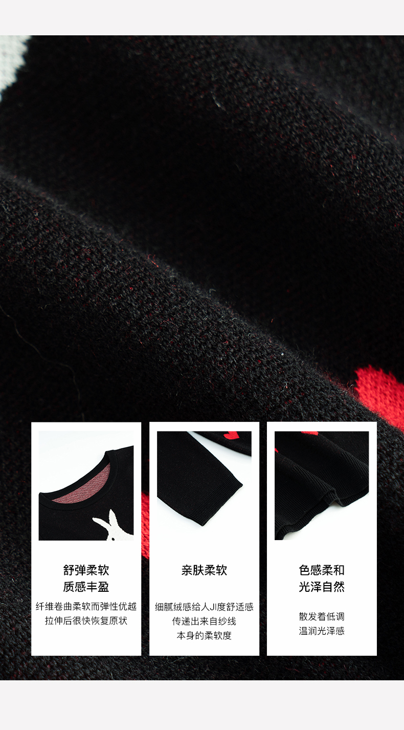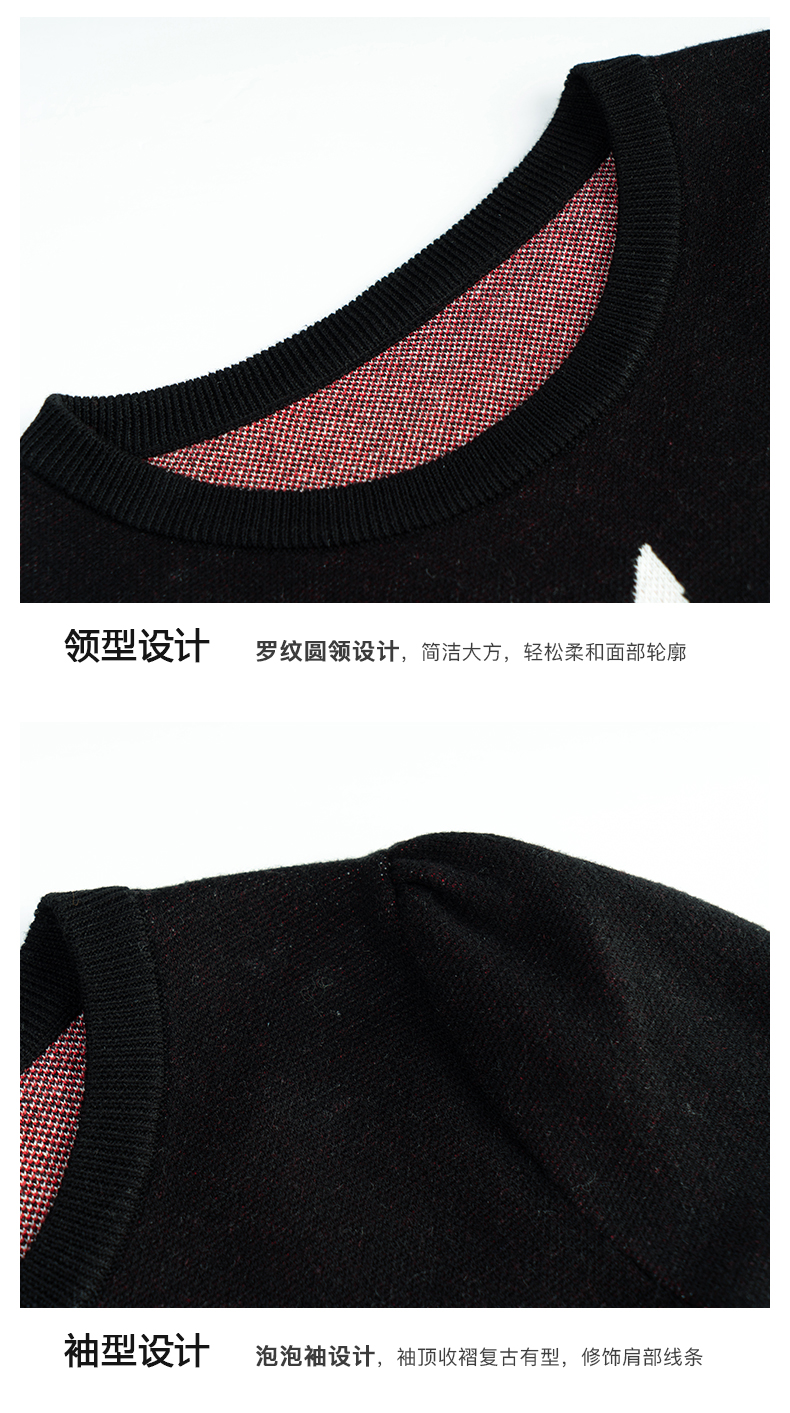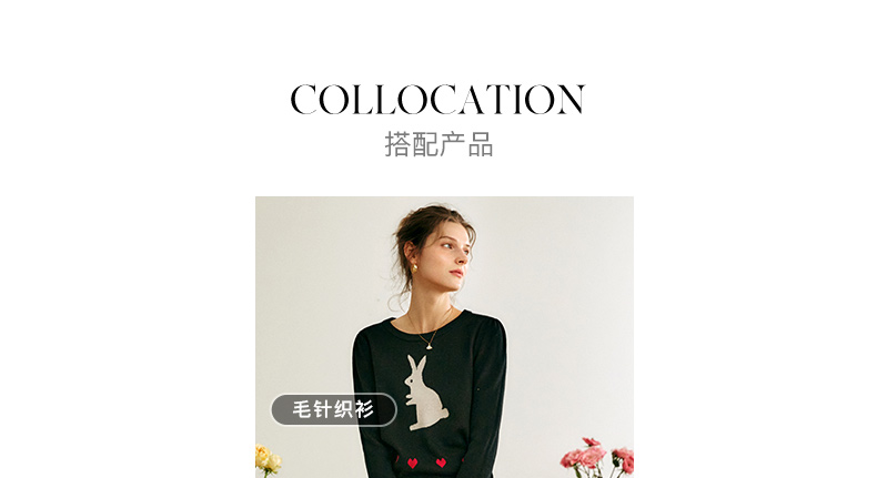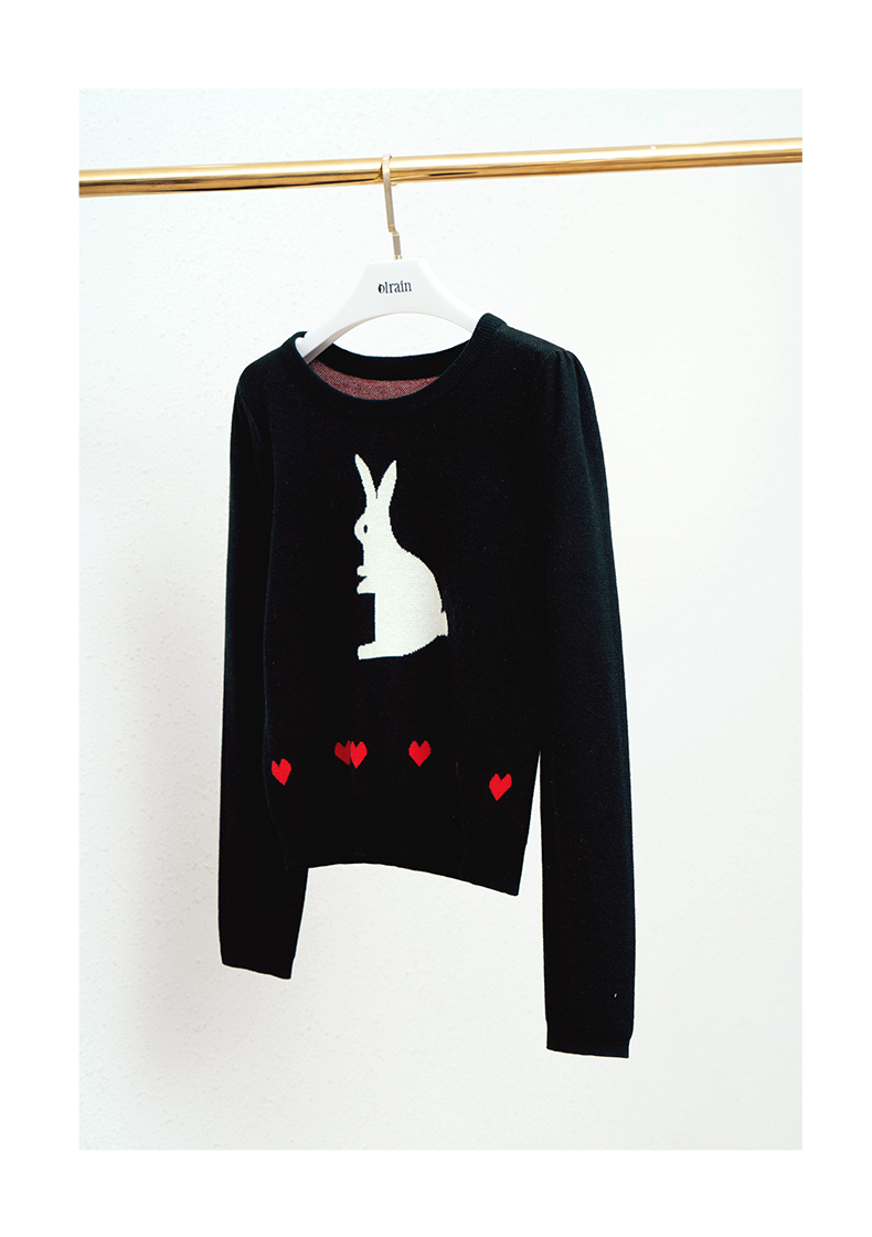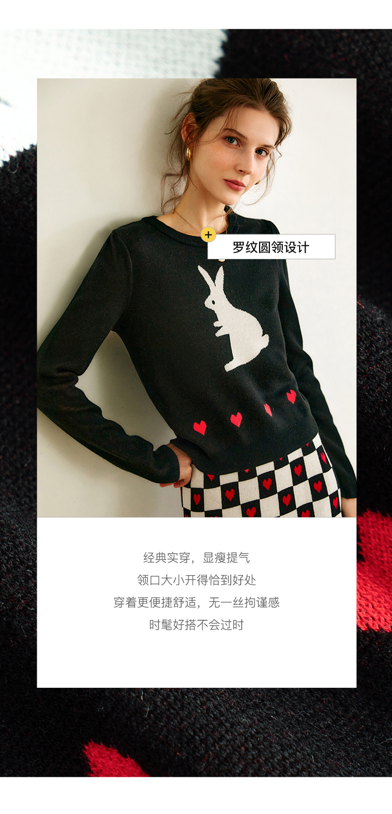 欧芮儿黑色针织衫女秋季2022年新款修身显瘦气质兔子提花套头毛衣
