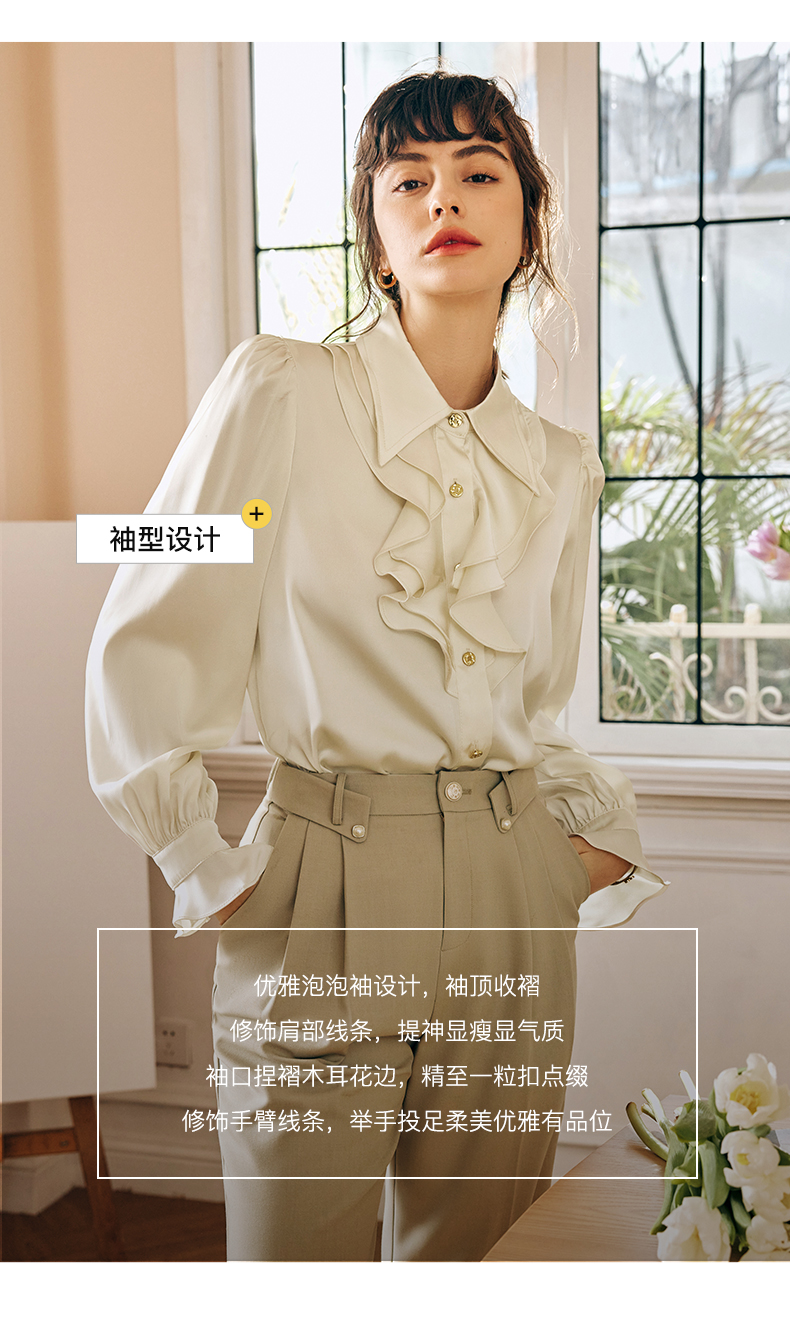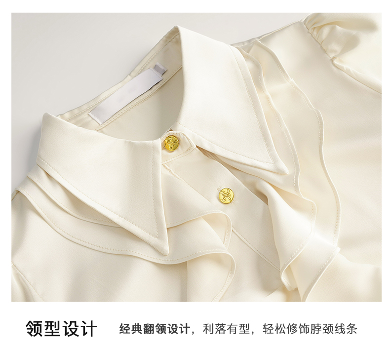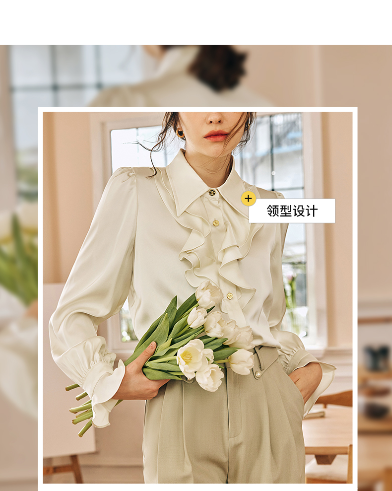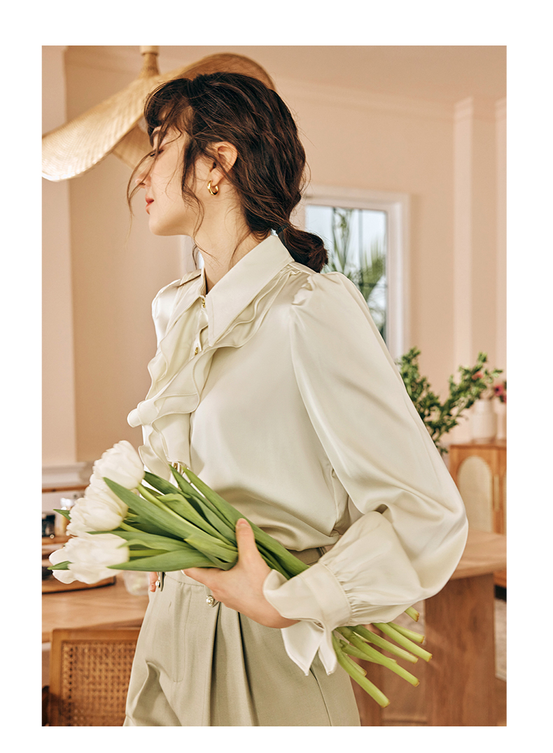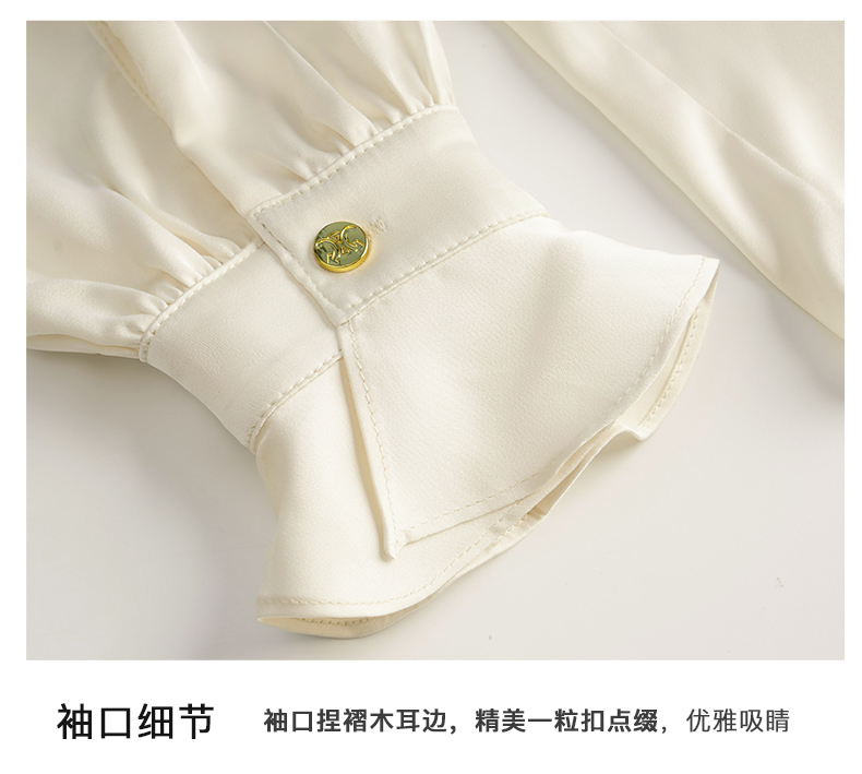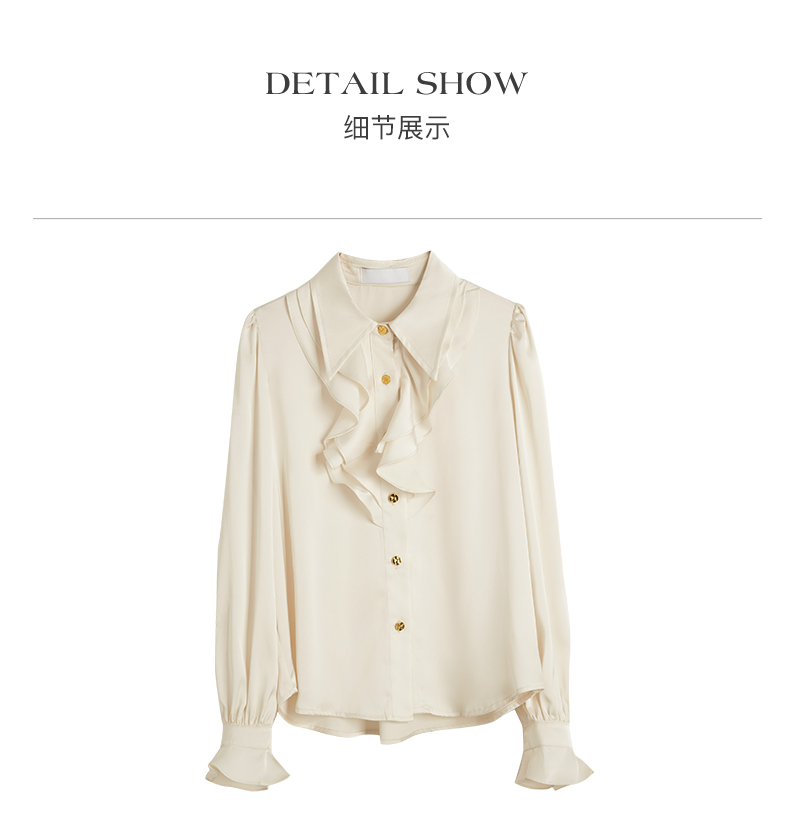 OLrain欧芮儿法式缎面蕾丝雪纺衫女春季2023年新款复古宫廷风上衣