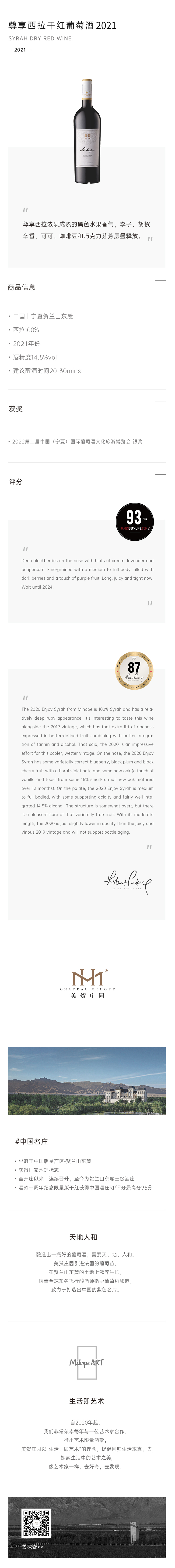 美贺庄园尊享西拉干红葡萄酒 1瓶