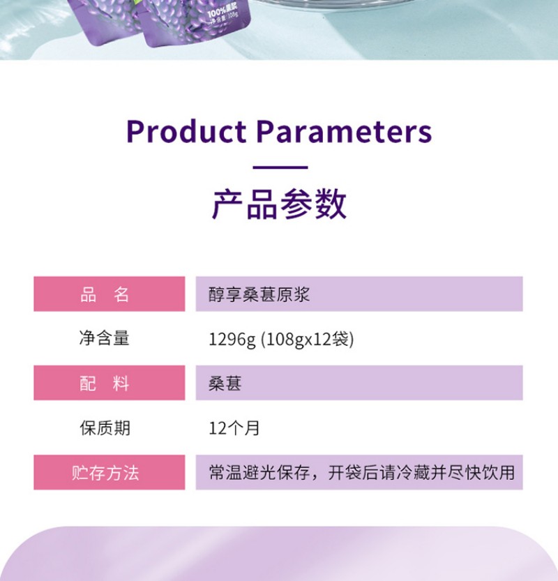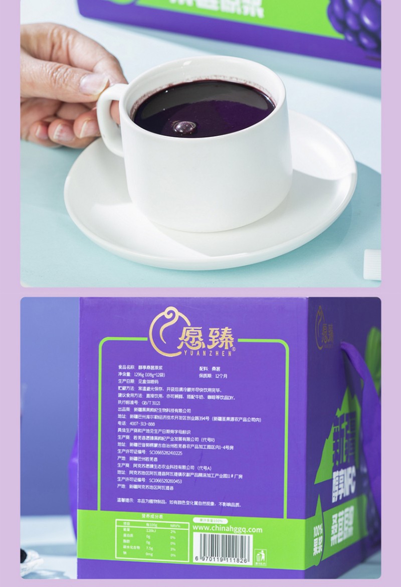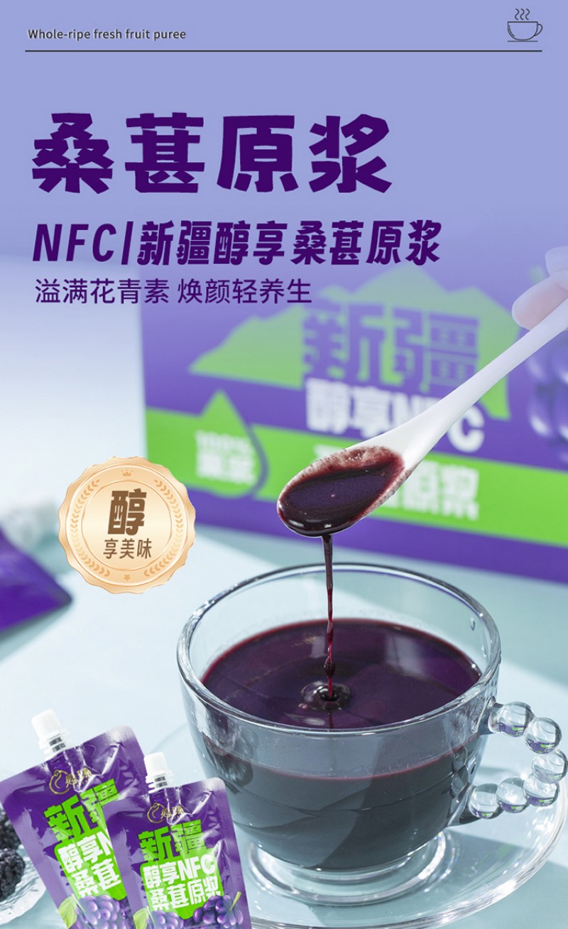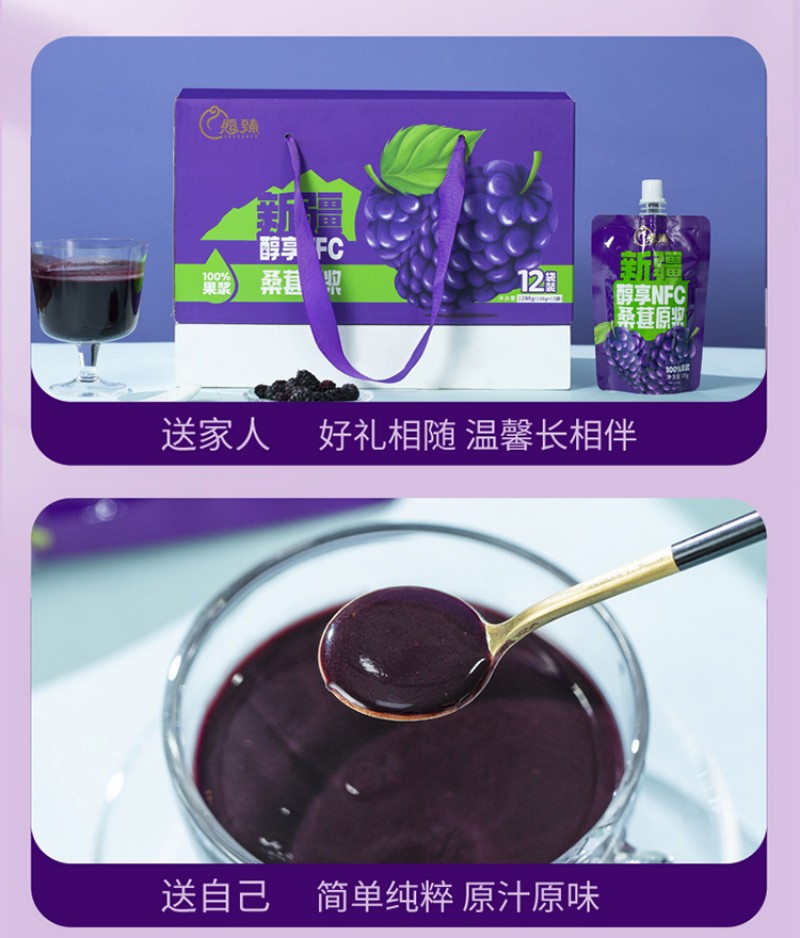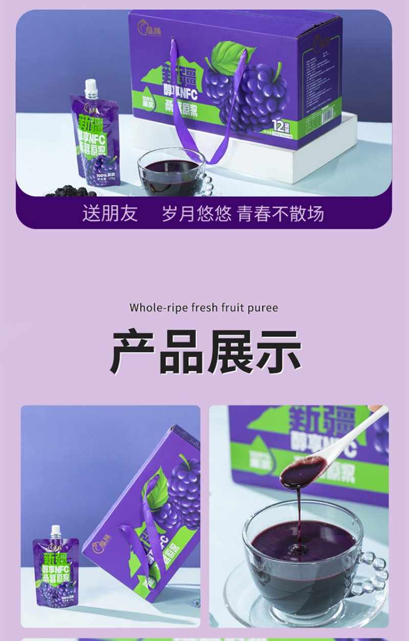 愿臻醇享NFC桑葚原浆 108g*12袋*1盒 新疆原产