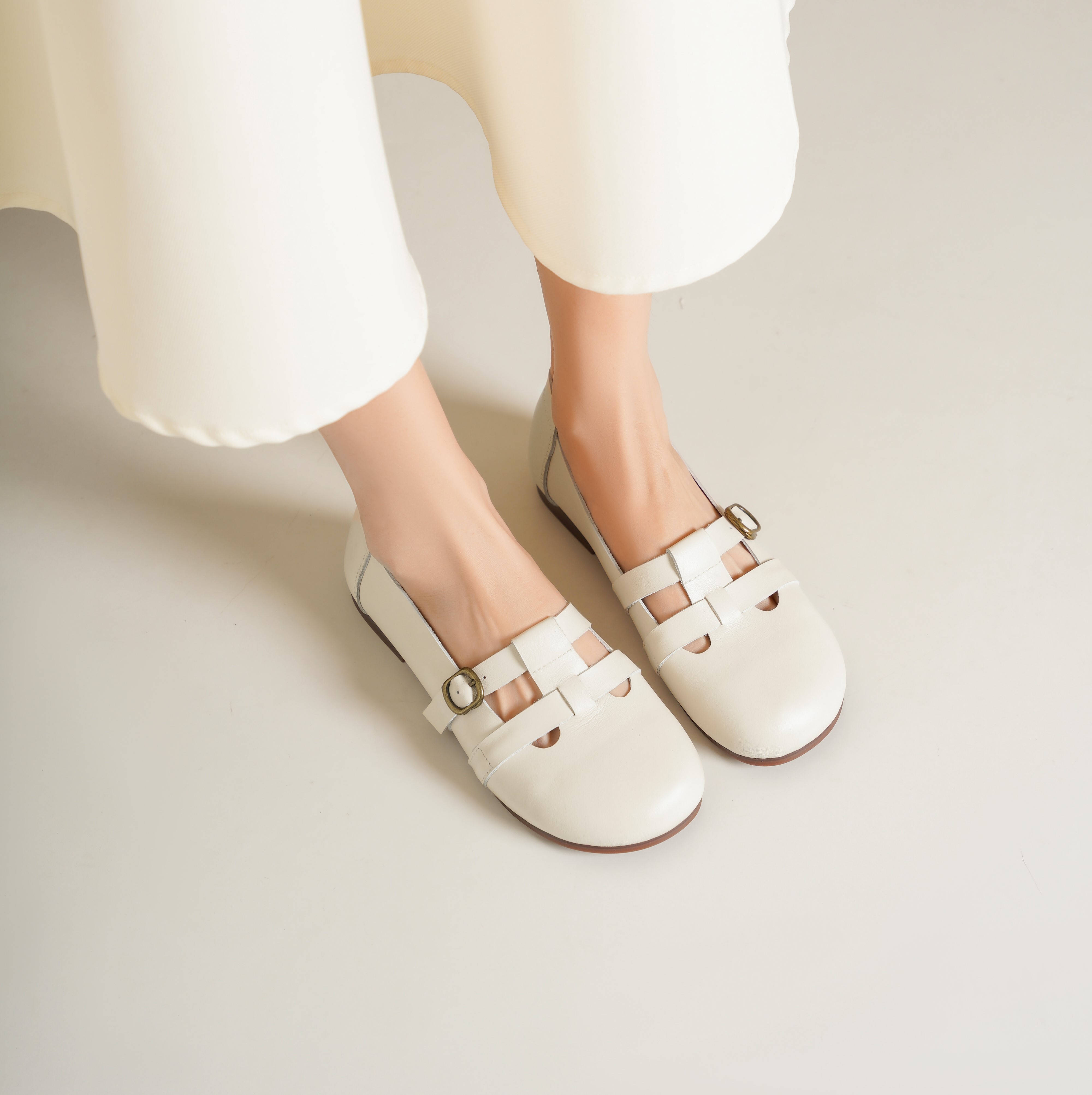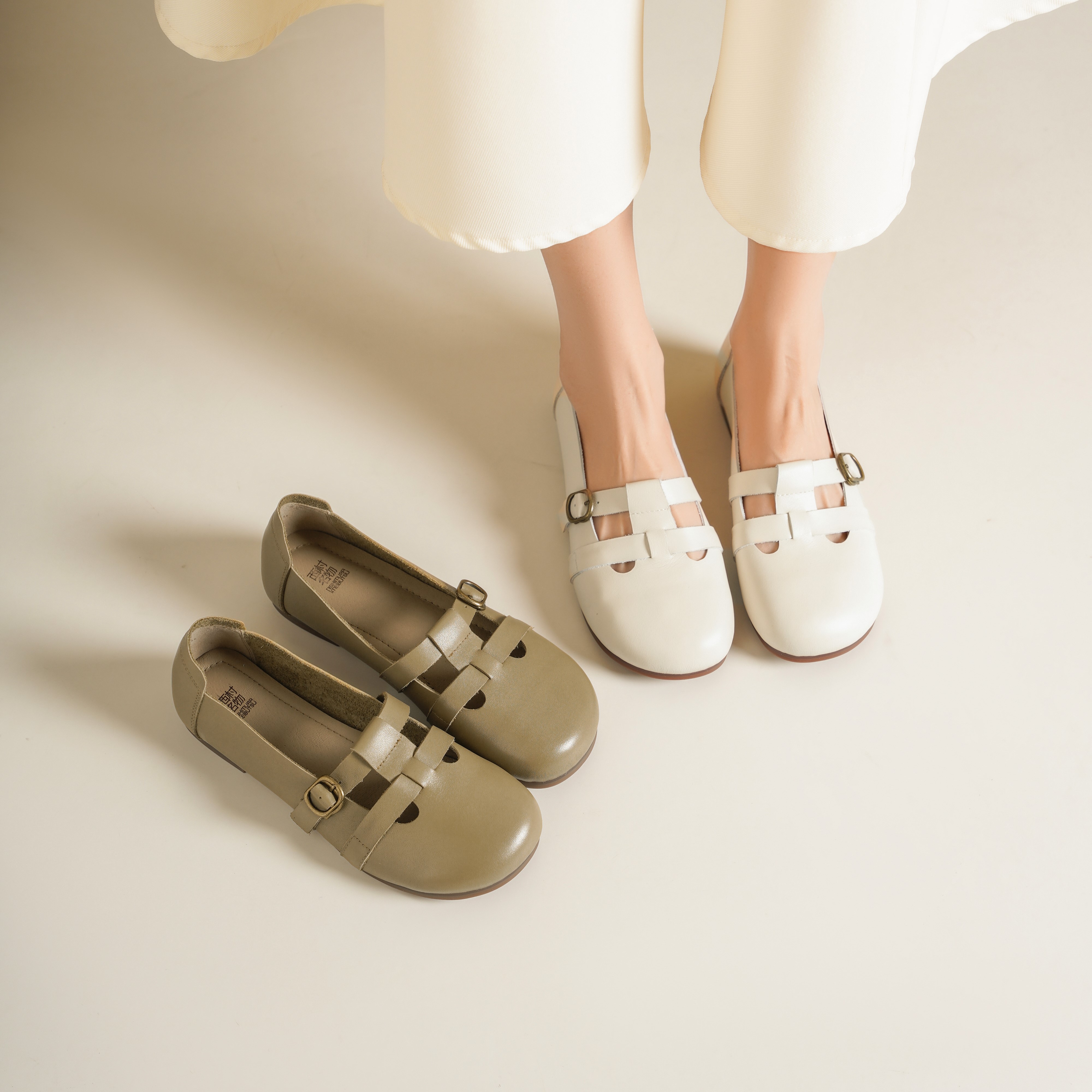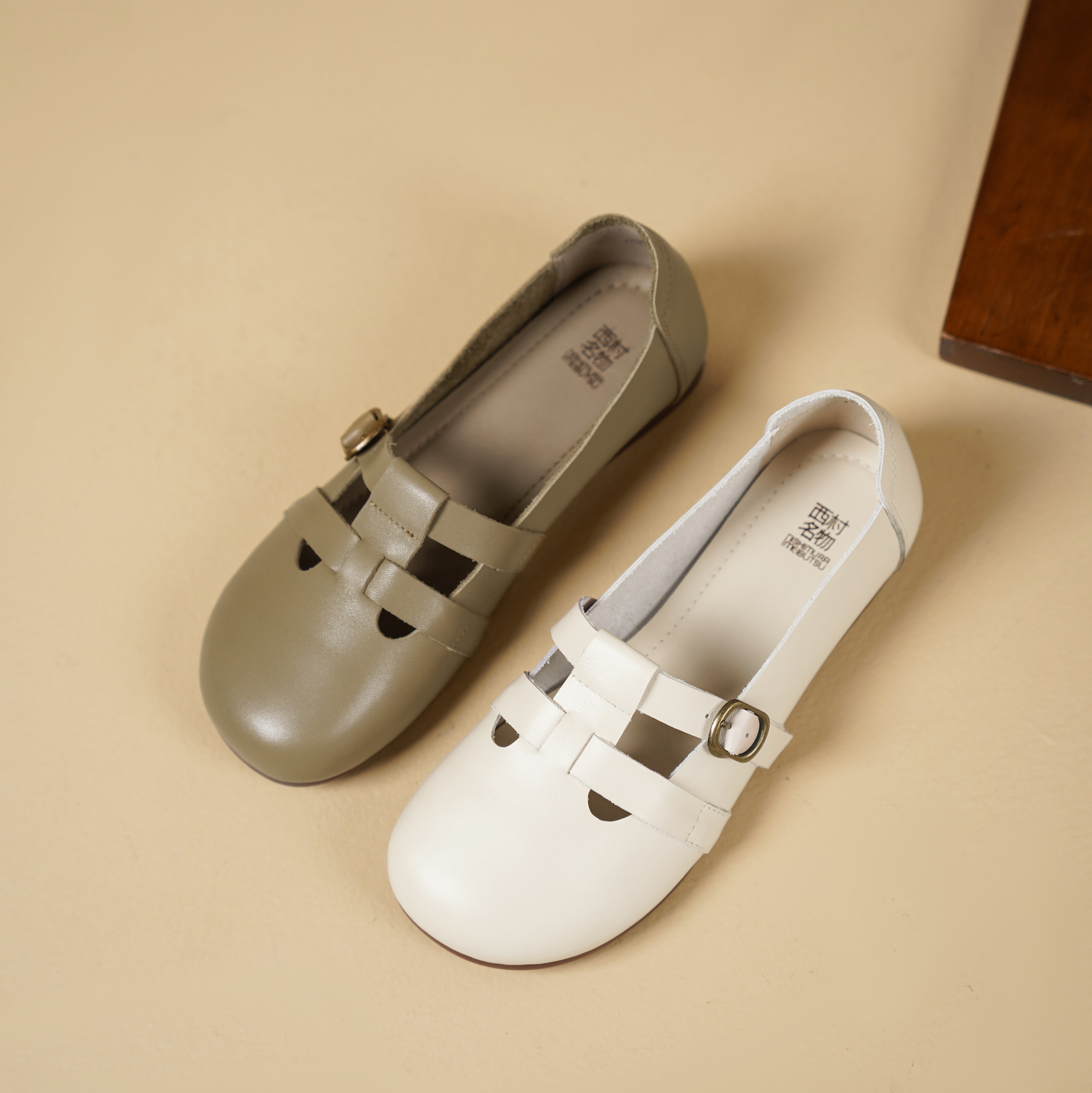 西村名物2025年夏季新款舒适软底平跟中式风前镂空浅口单鞋T25AE14991
