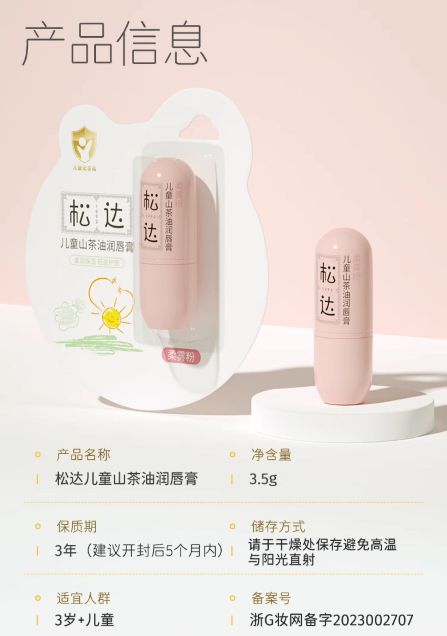 松达 儿童山茶油 润唇膏 护唇膏 3.5g