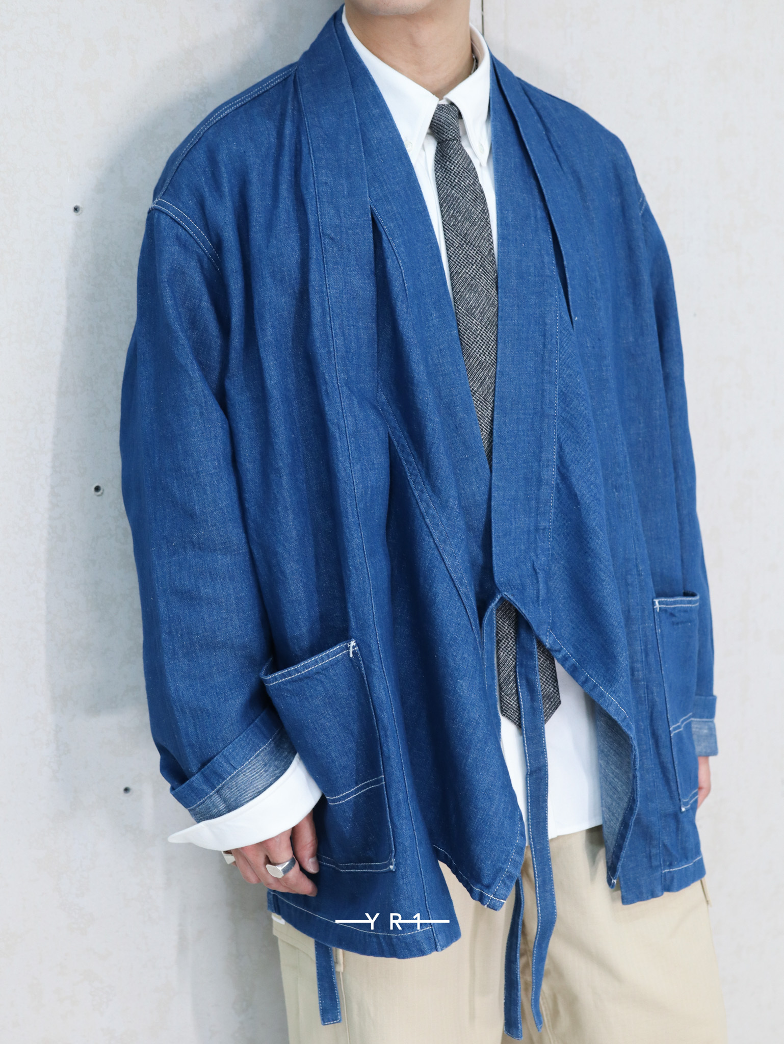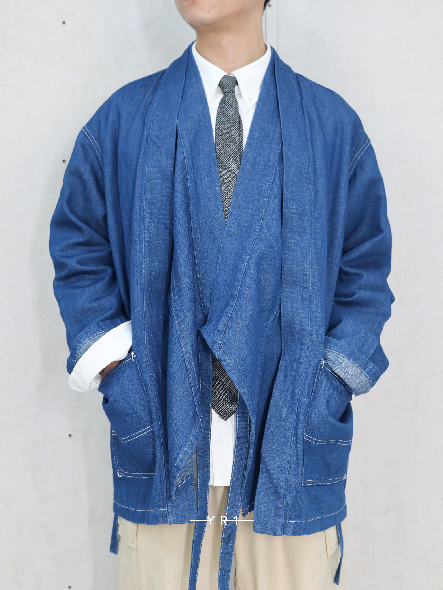 亚麻牛仔和服夹克