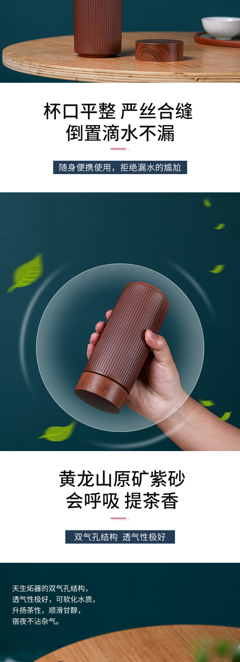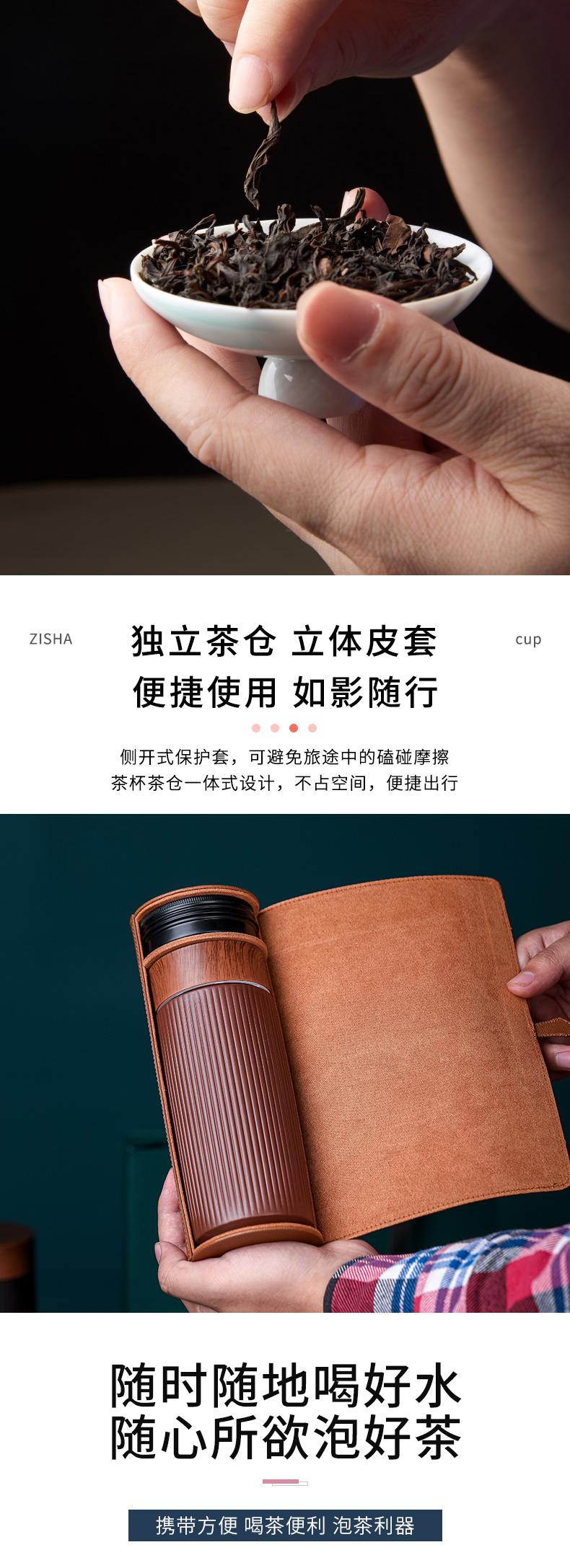文心紫砂双层随身杯套装耐高温中式功夫茶随身保温杯