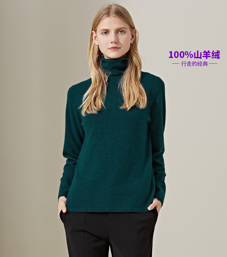 羊绒世家2020早春新款女士高领100%山羊绒衫修身内搭保暖针织毛衣