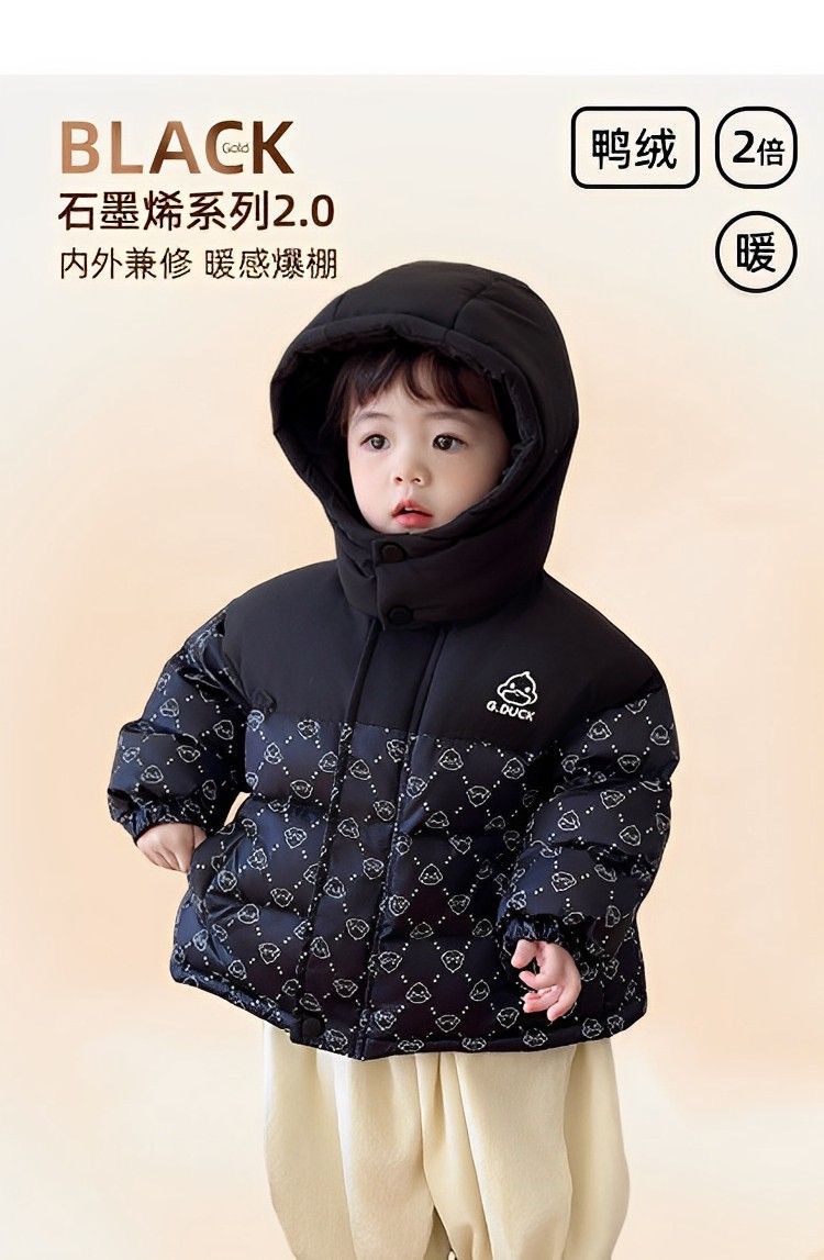黑金小黄鸭儿童羽绒服男童女童2024加厚90白鸭绒冬装冬季宝宝外套