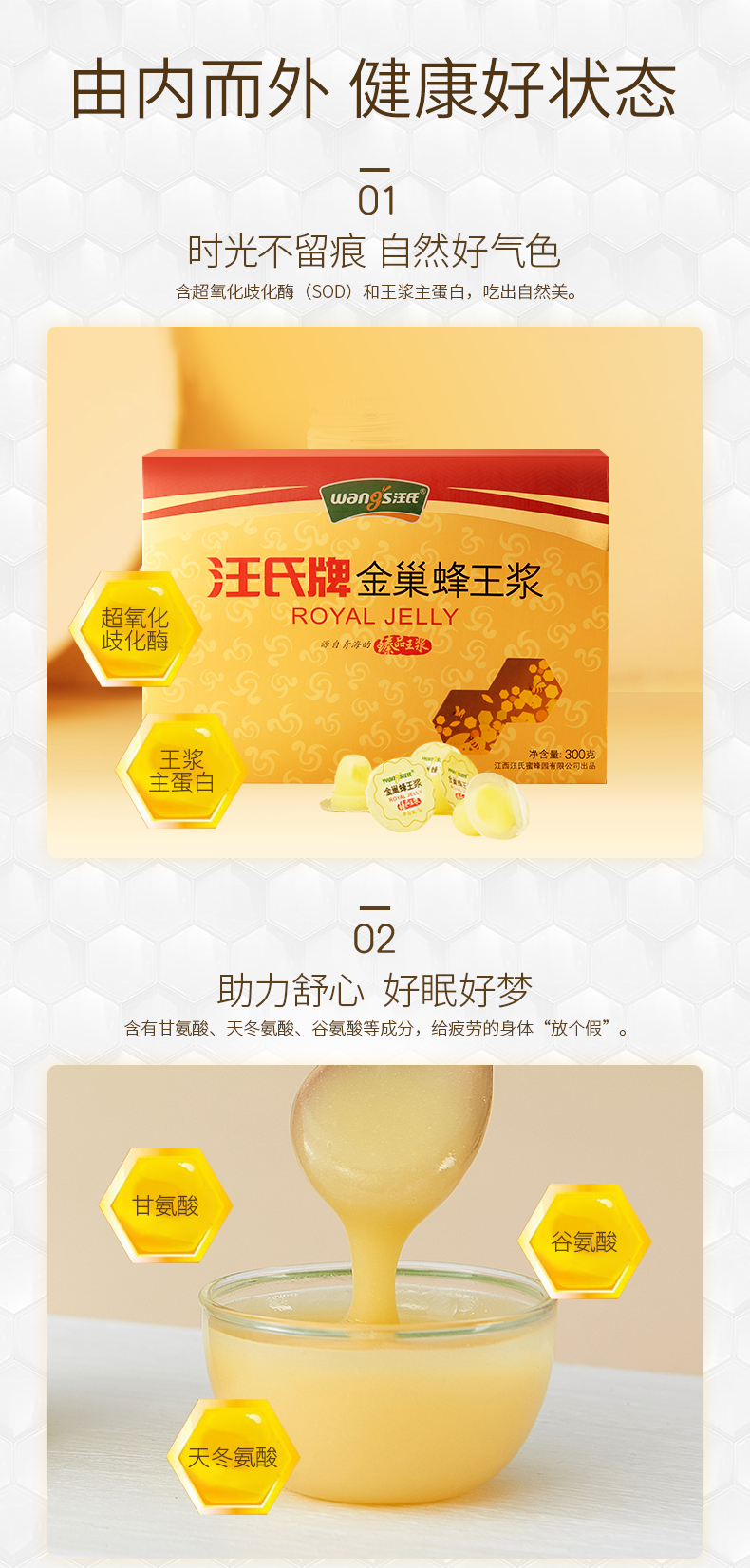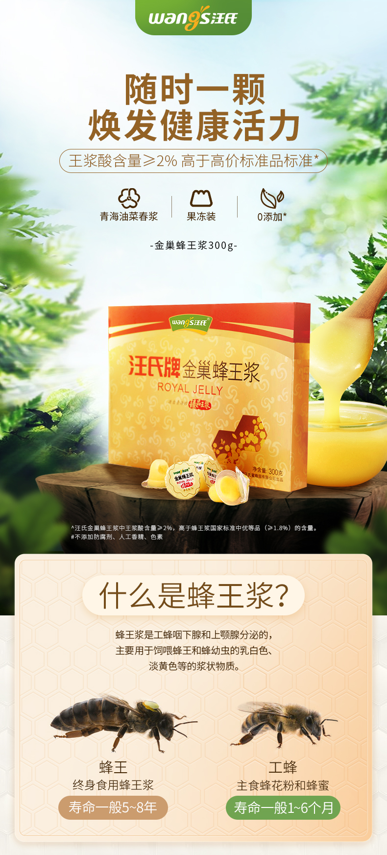 汪氏金巢鲜蜂王浆300g*3盒果冻装