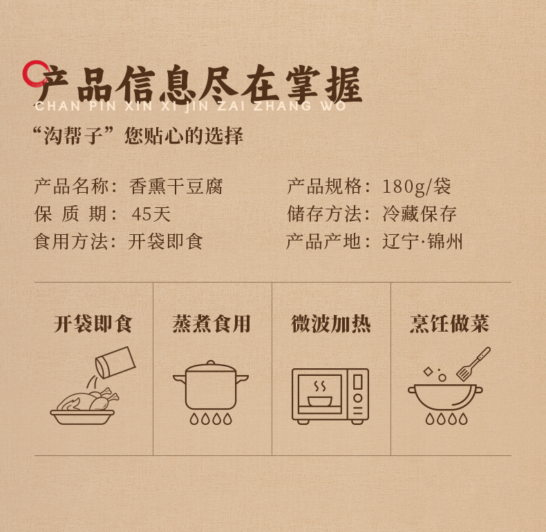【沟帮子】沟帮子鲜熏小食 十二道熏味 豆卷180g*3袋