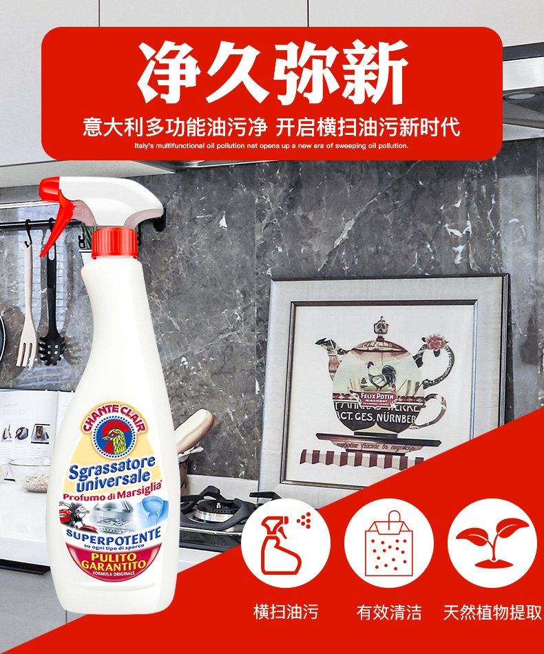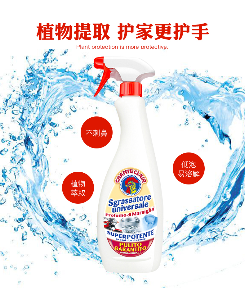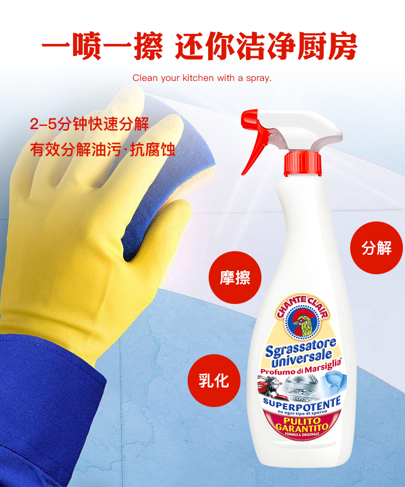 意大利大公鸡头经典型多功能厨房油污清洁剂大公鸡管家625ml*2瓶【GPQ】