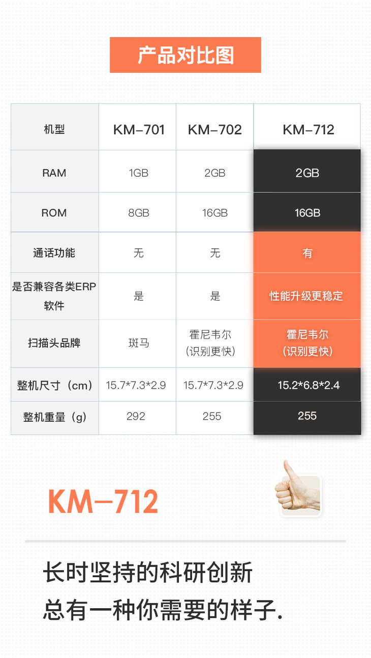 快麦PDA KM-712S移动条码数据采集器手持终端wifi扫码枪电商ERP万里牛管家婆聚水旺店通快递物流出入仓库盘点