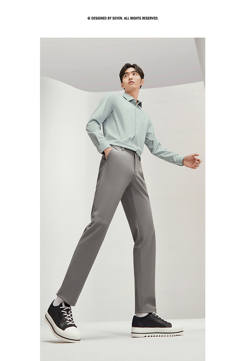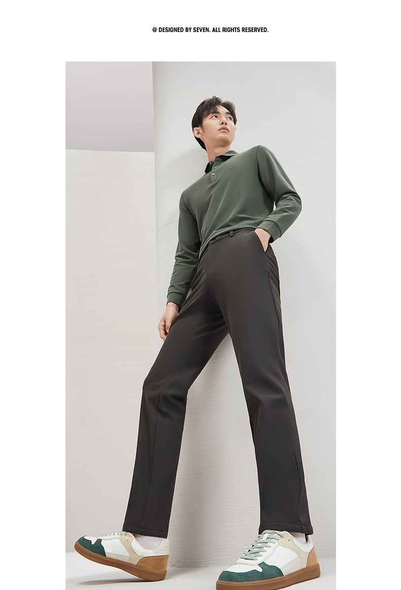 【复合加绒】柒牌弹力休闲裤男2024秋冬新品商务通勤防水直筒长裤 127H72350