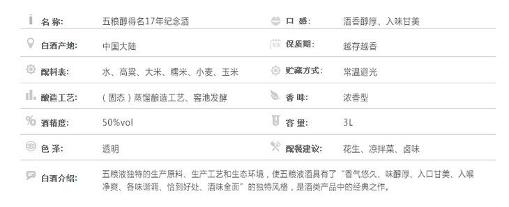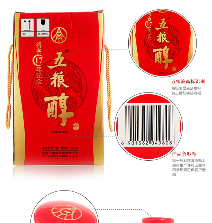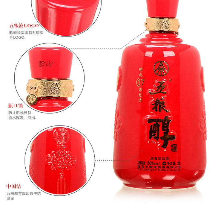 50度五粮醇得名17周年纪念酒3000ml(2012年老酒)单瓶