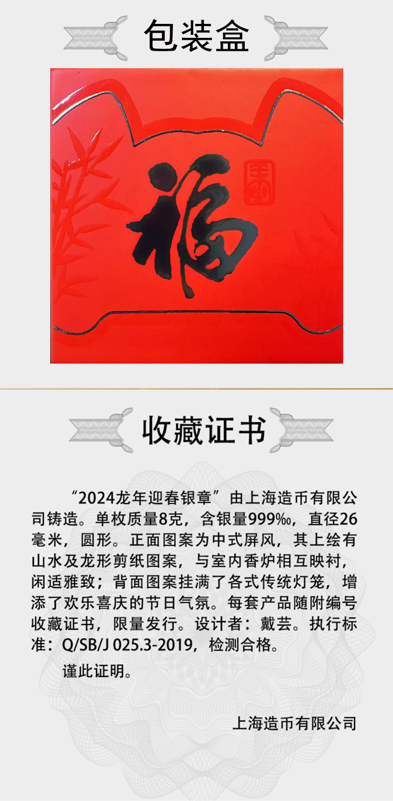 【上海造币】2024甲辰龙年迎春贺岁足银纪念章