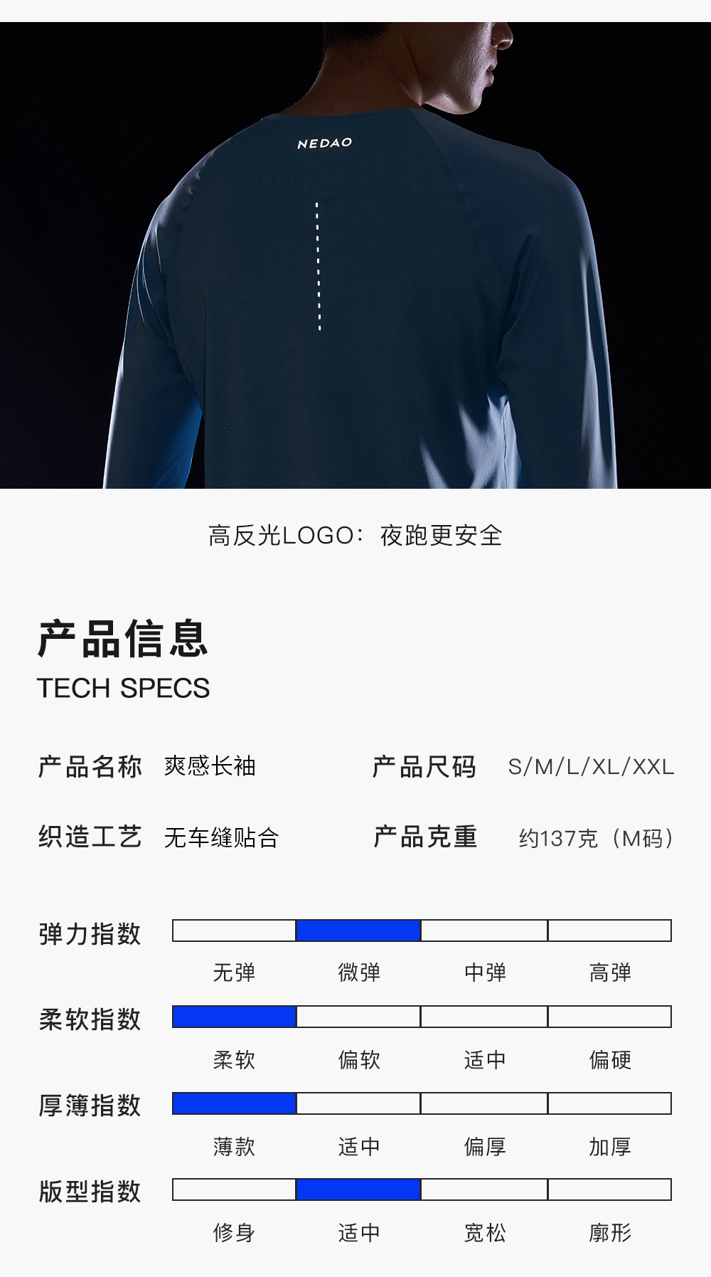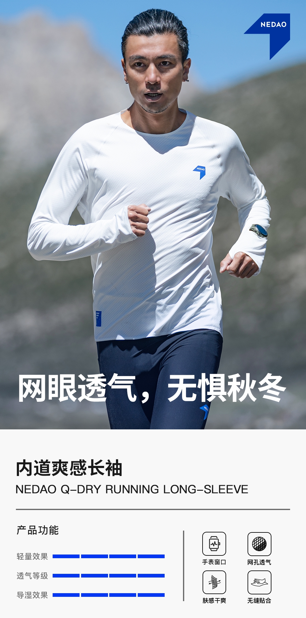 NEDAO内道爽感速干秋冬跑步马拉松越野男款圆领训练长袖
