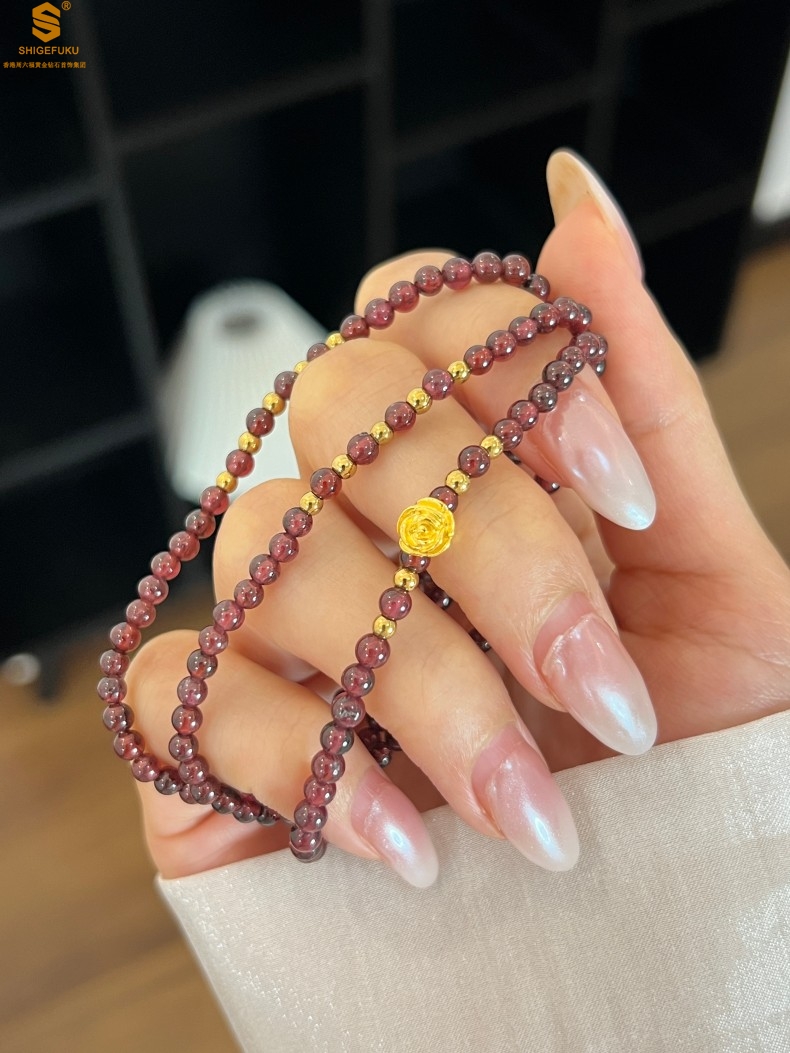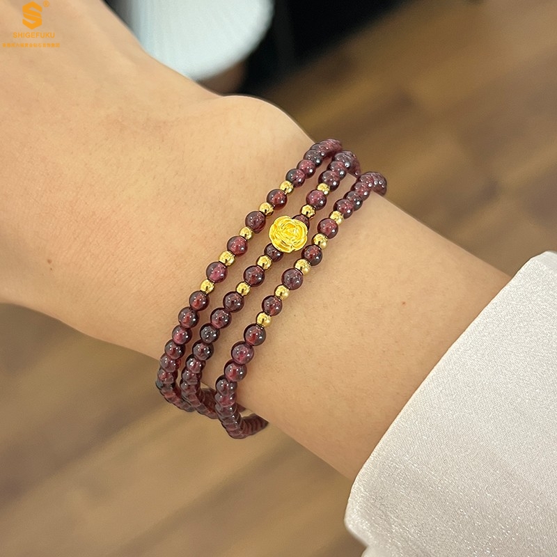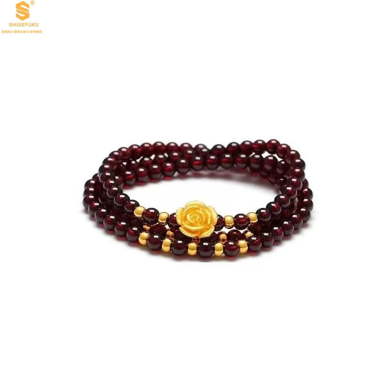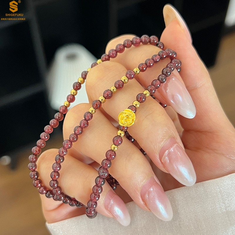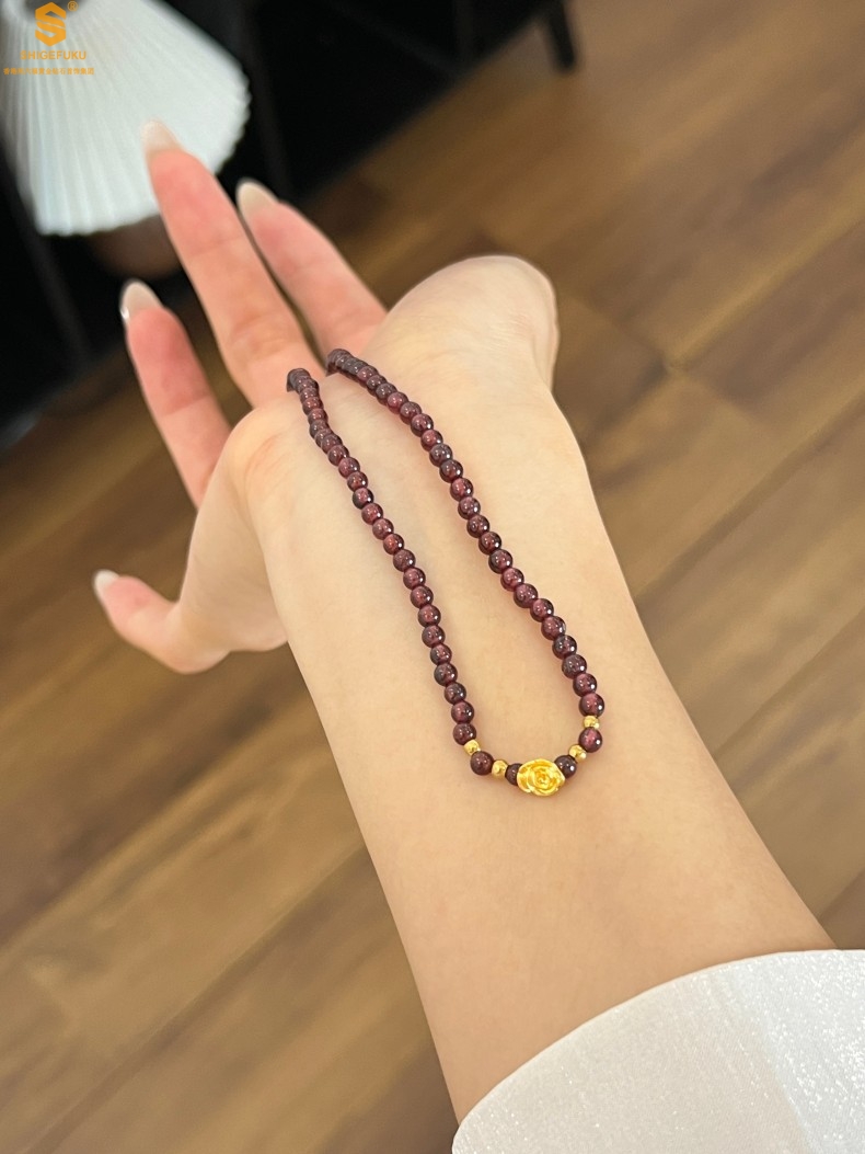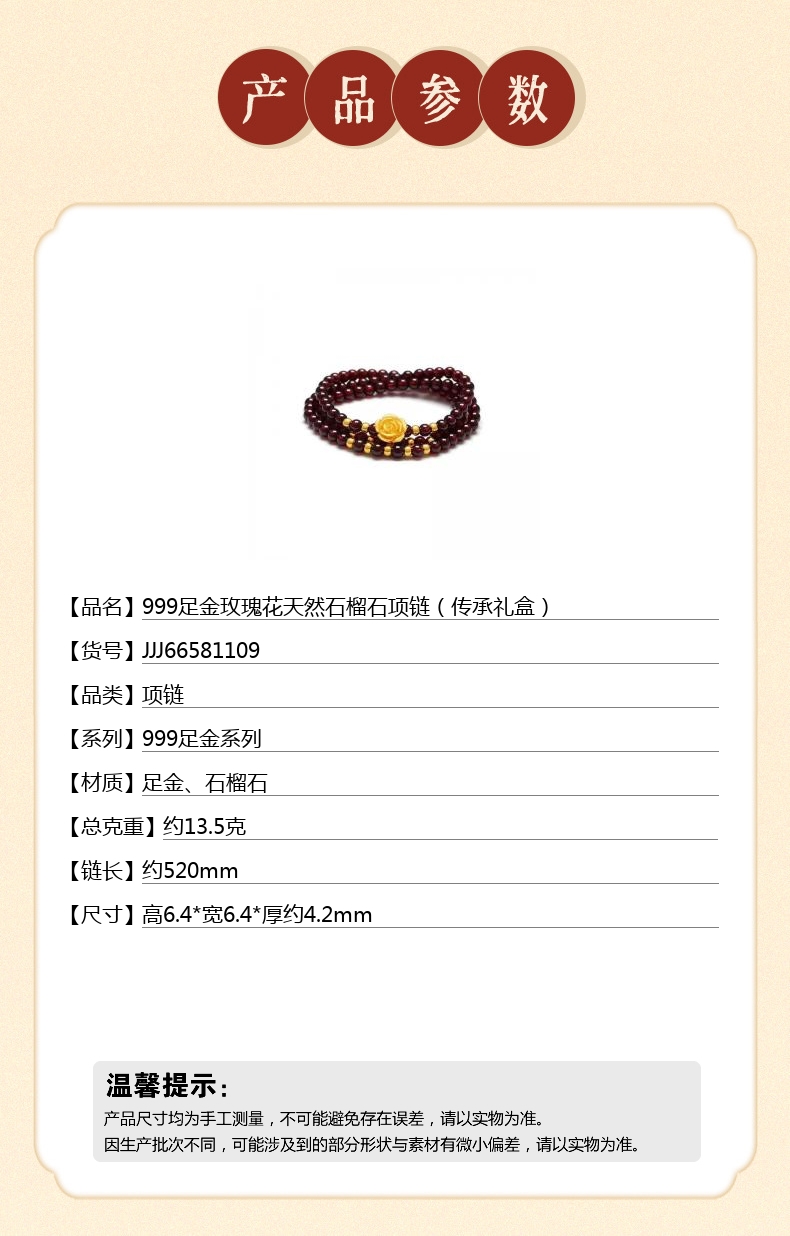 【品名】999足金玫瑰花天然石榴石项链(传承礼盒)