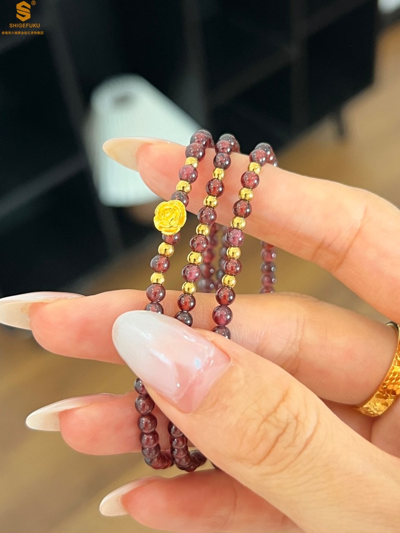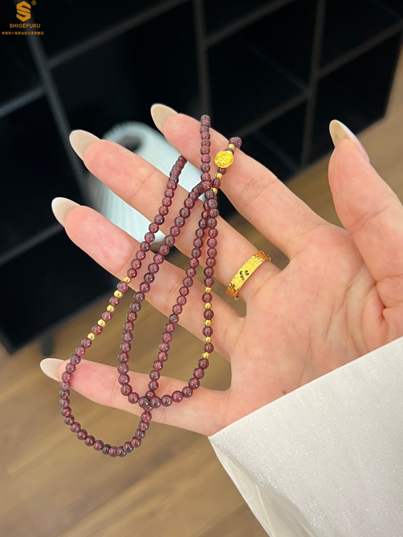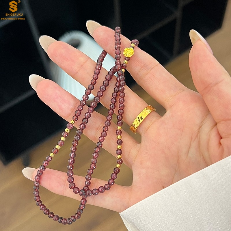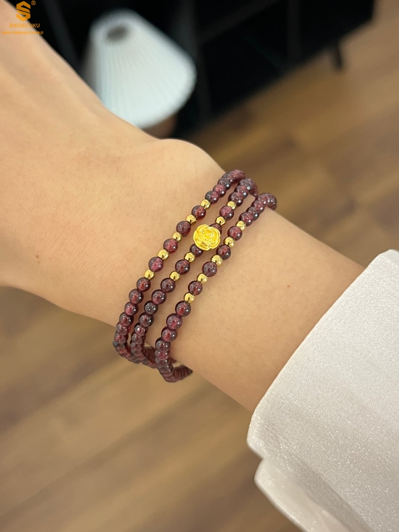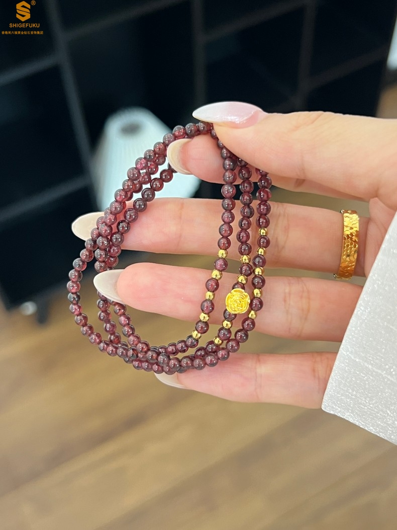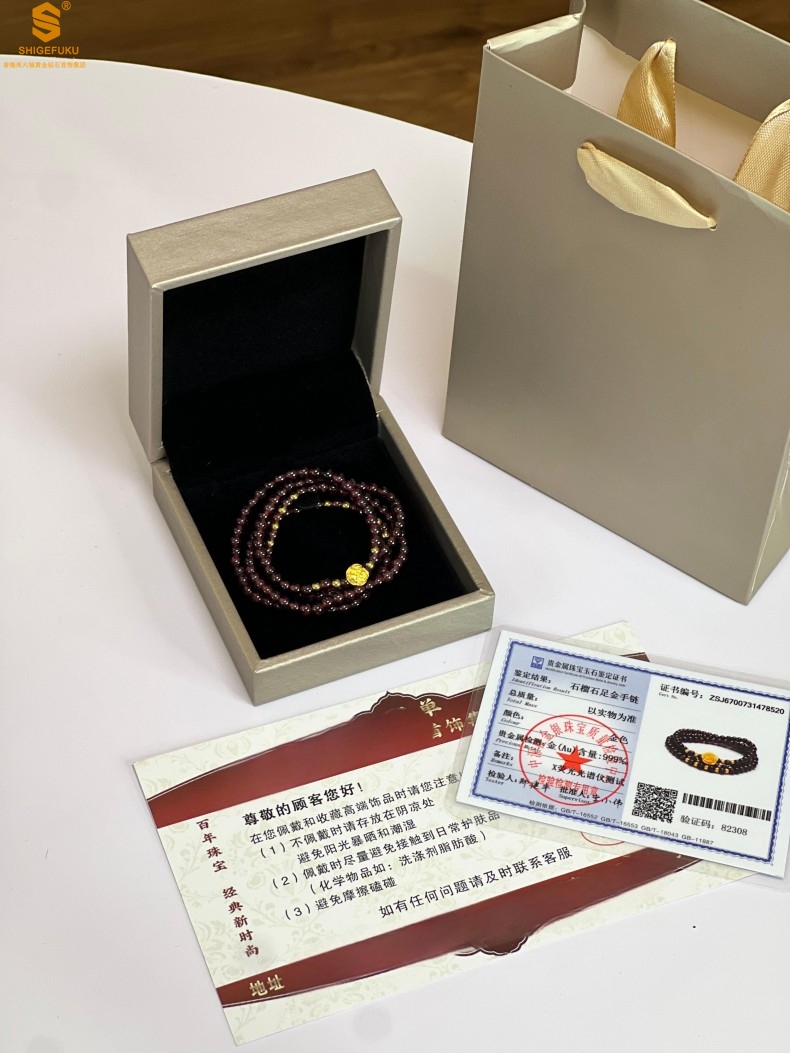 【品名】999足金玫瑰花天然石榴石项链(传承礼盒)