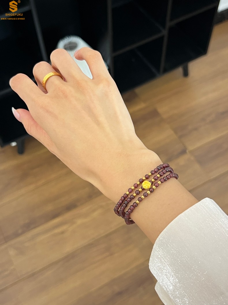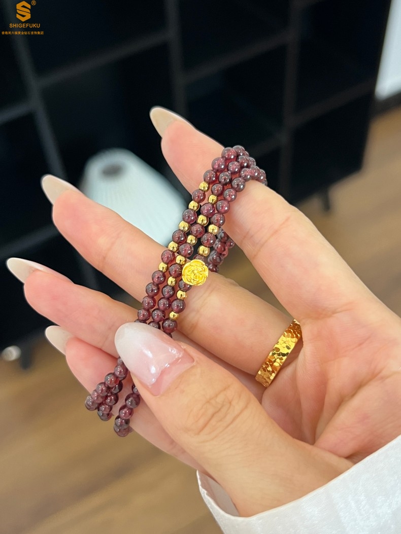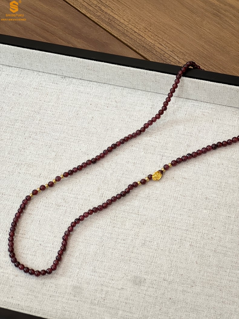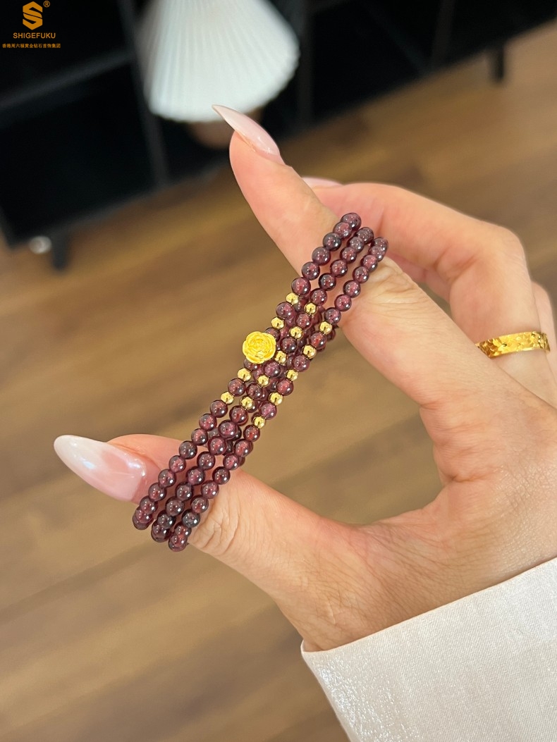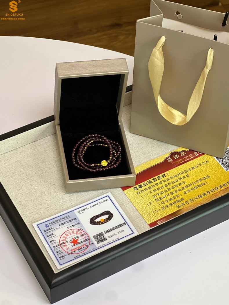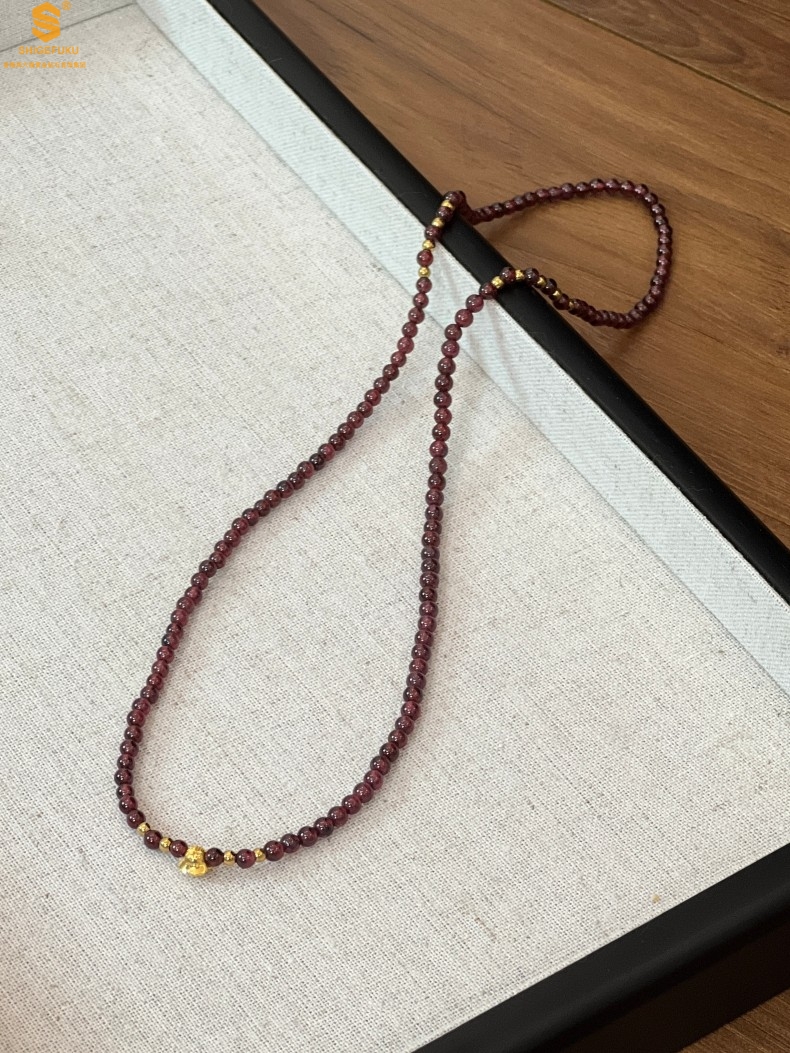 【品名】999足金玫瑰花天然石榴石项链(传承礼盒)