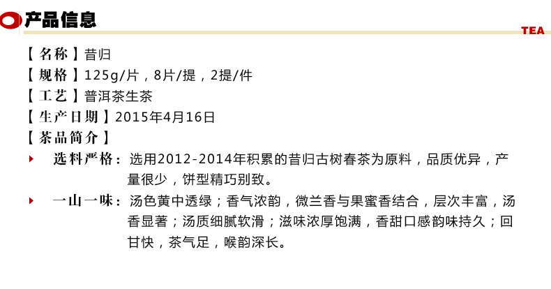 【臻品】澜沧古茶2015年昔归小饼生茶普洱茶云南茶叶纯料古树125g