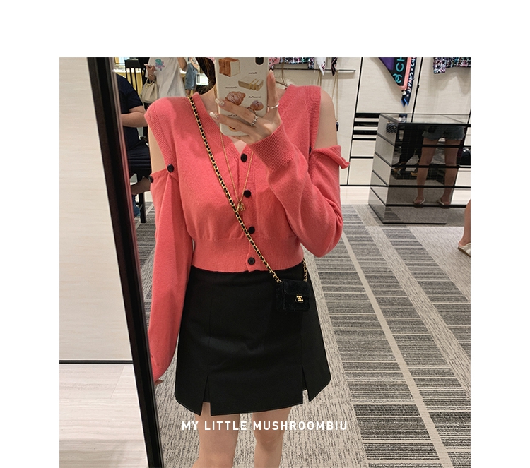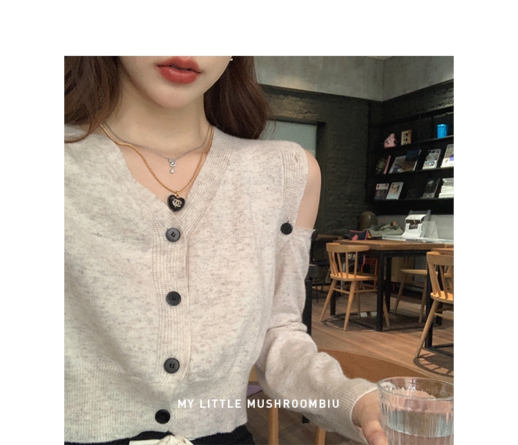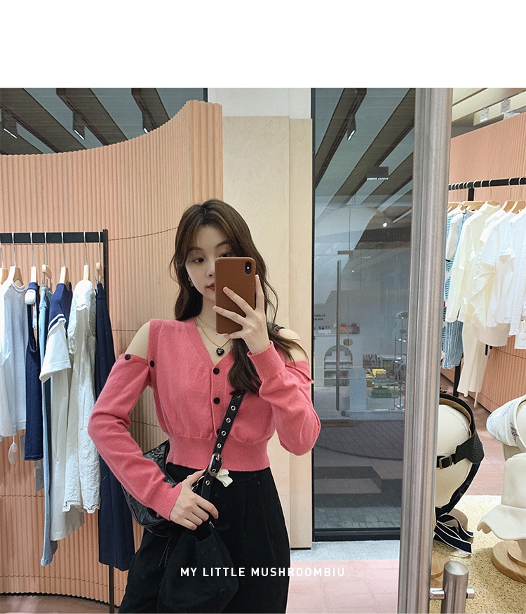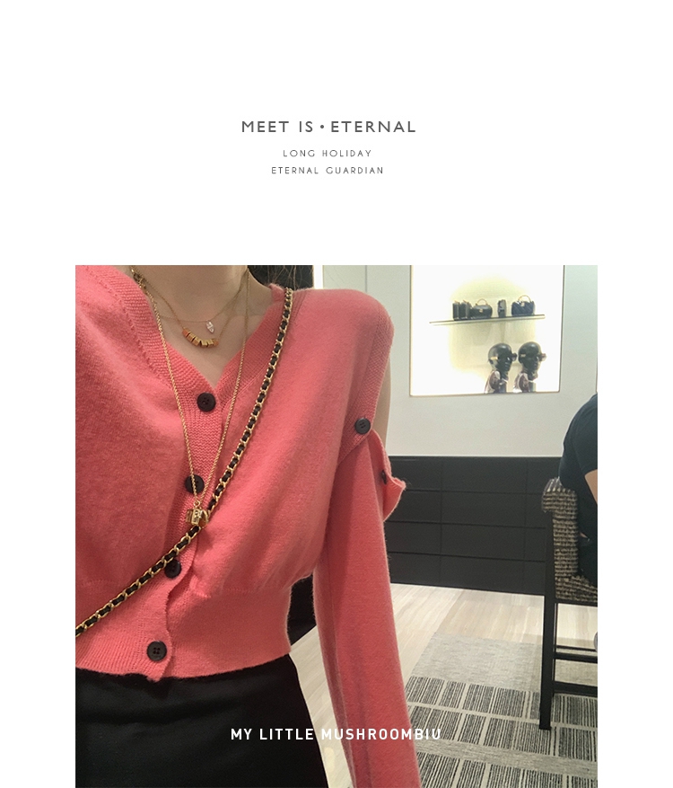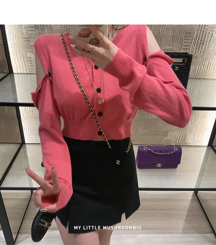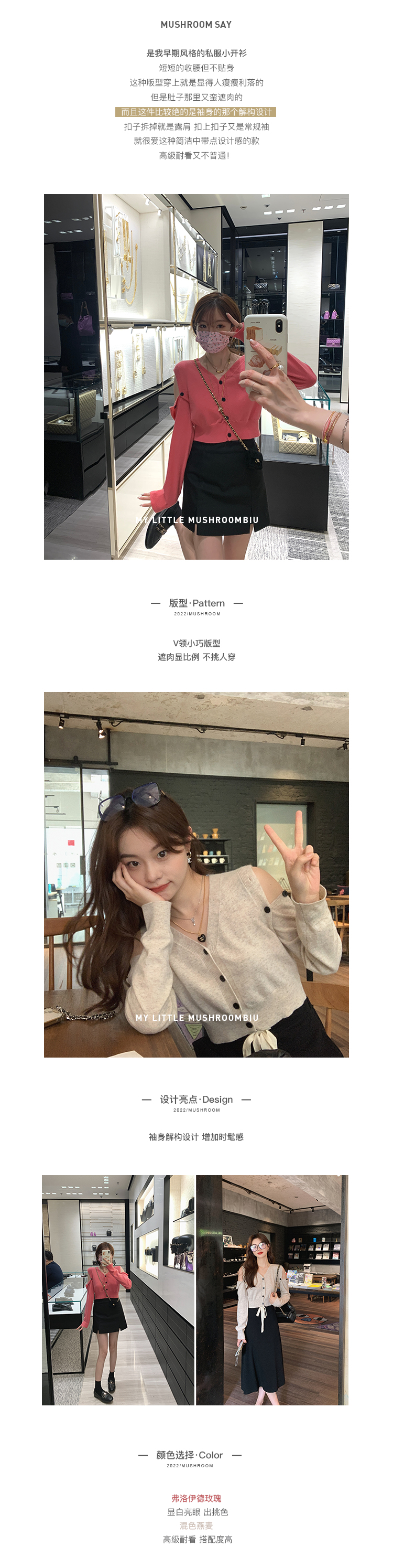 金蘑菇菇【弗洛伊德玫瑰】纸片人v领小短款设计感露肩小开衫
