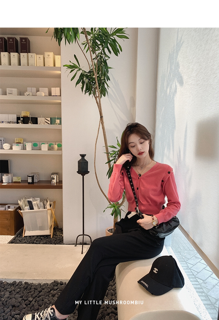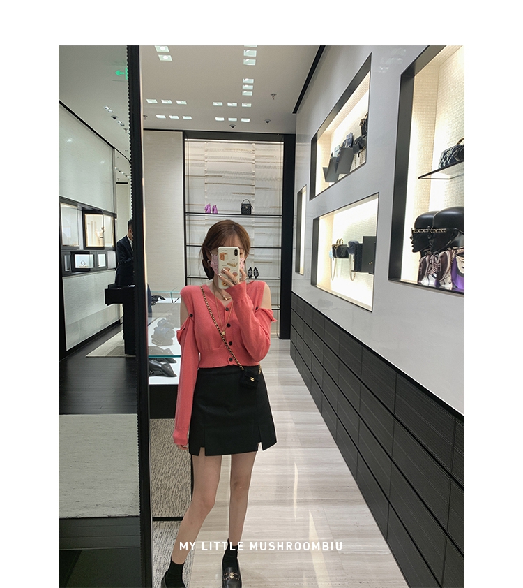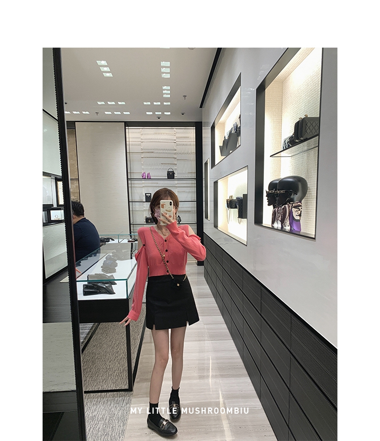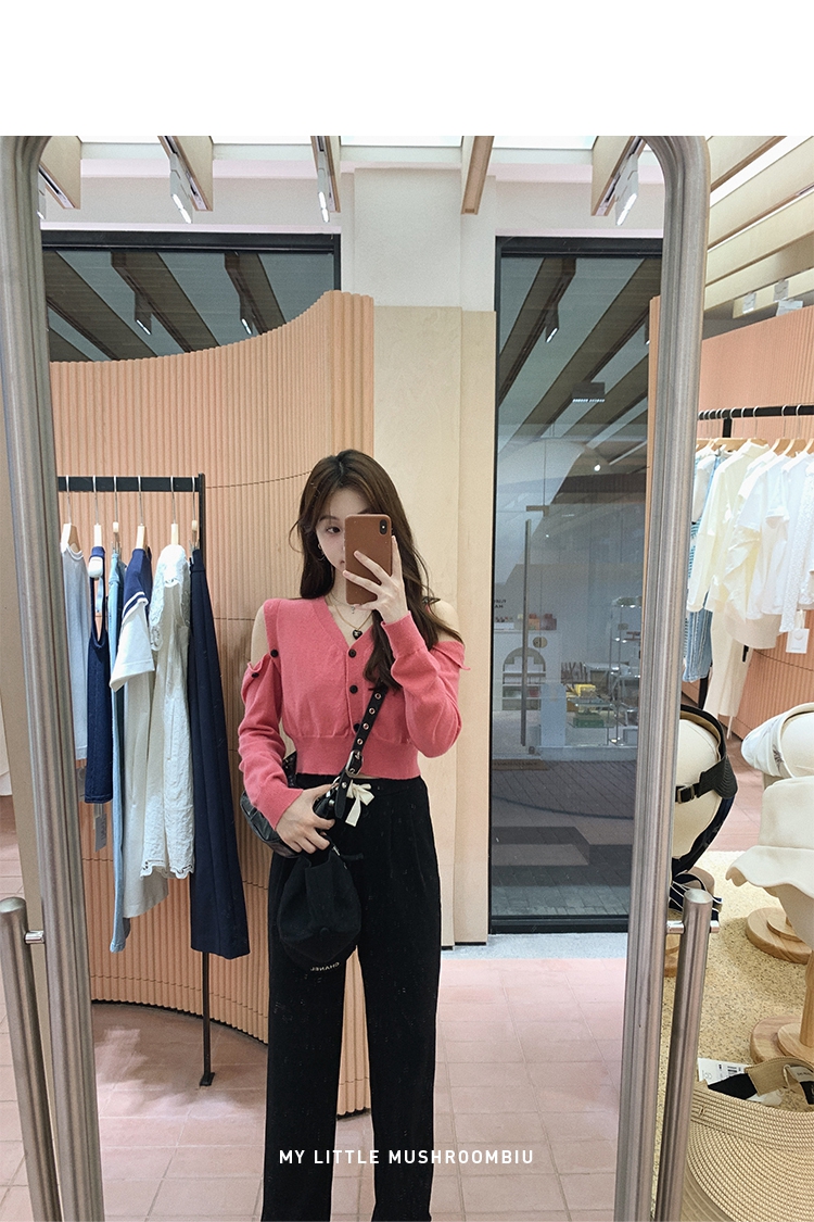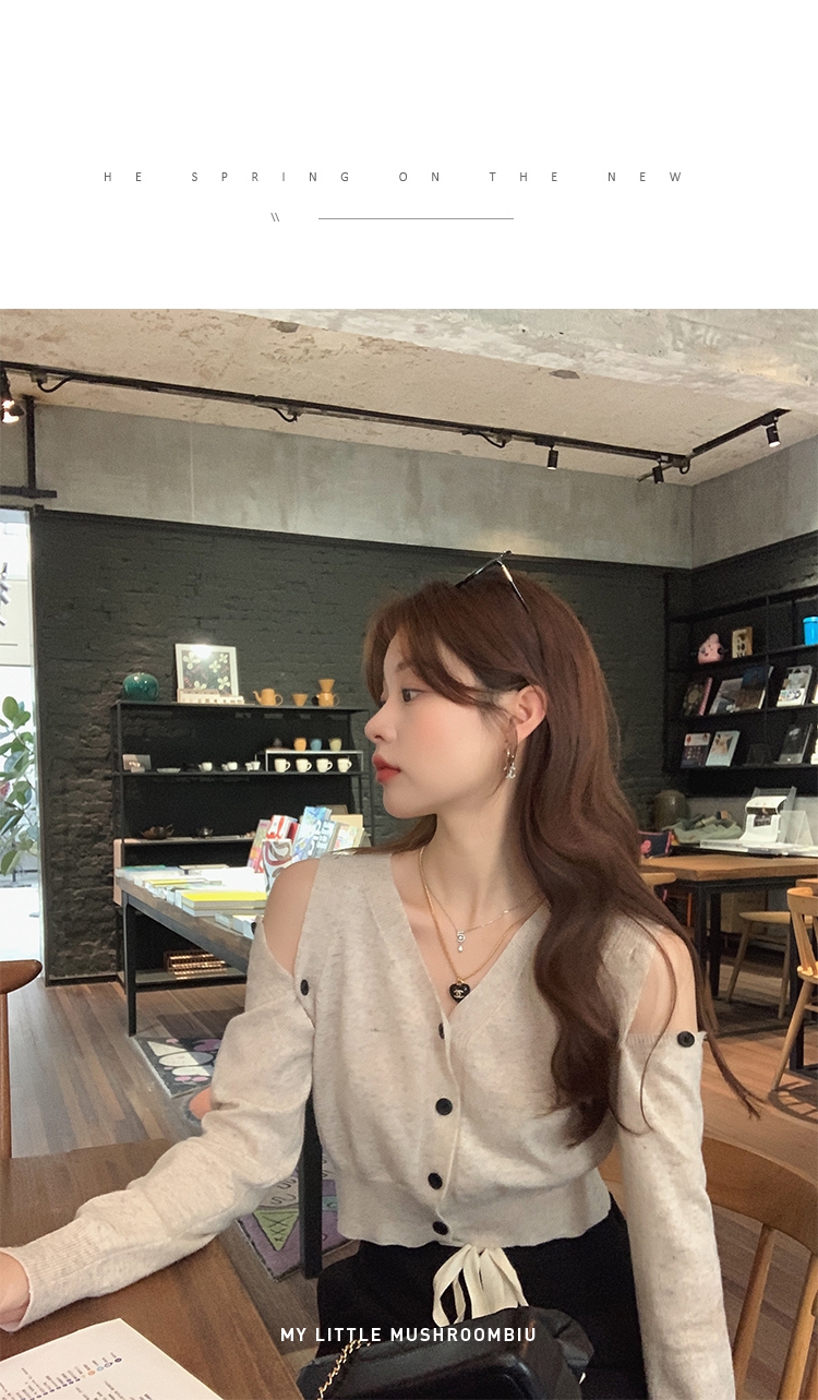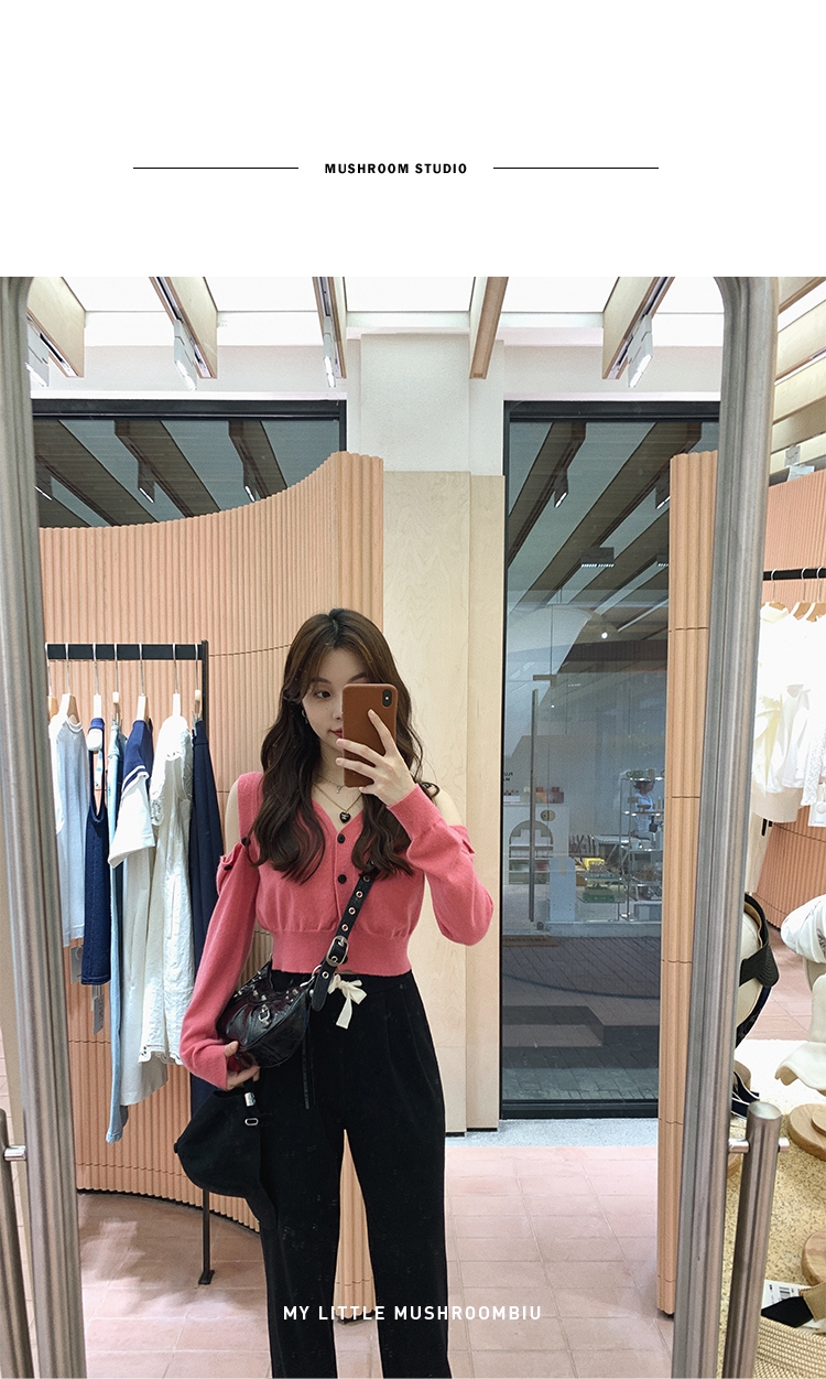金蘑菇菇【弗洛伊德玫瑰】纸片人v领小短款设计感露肩小开衫