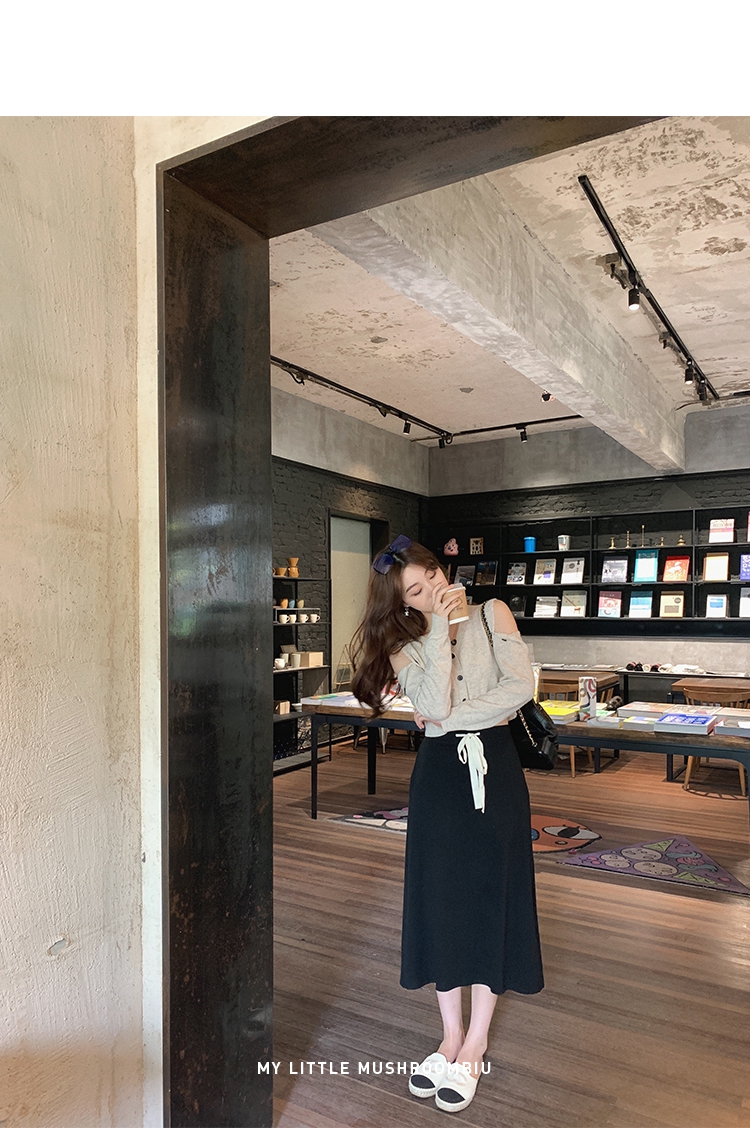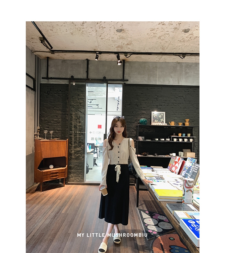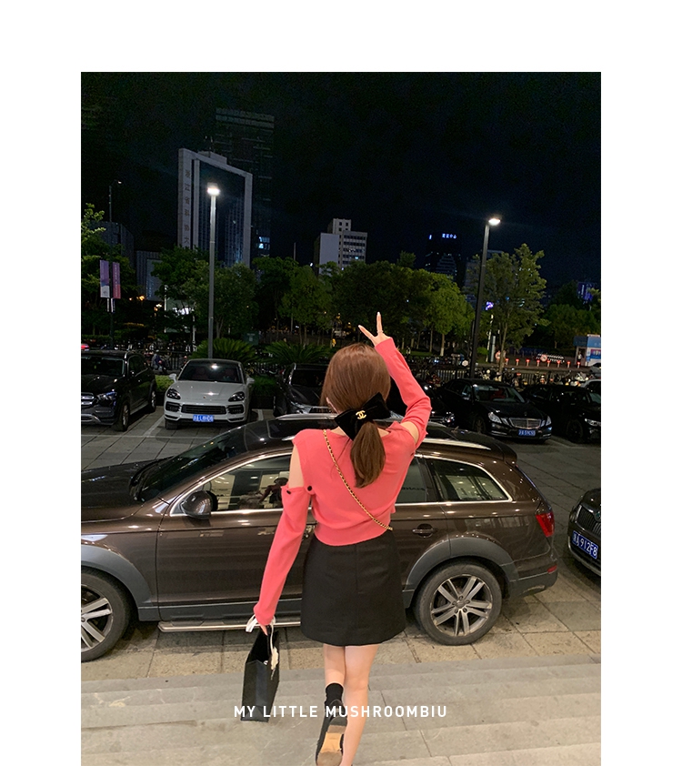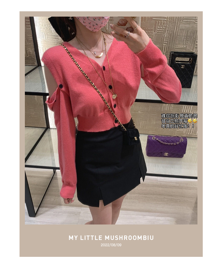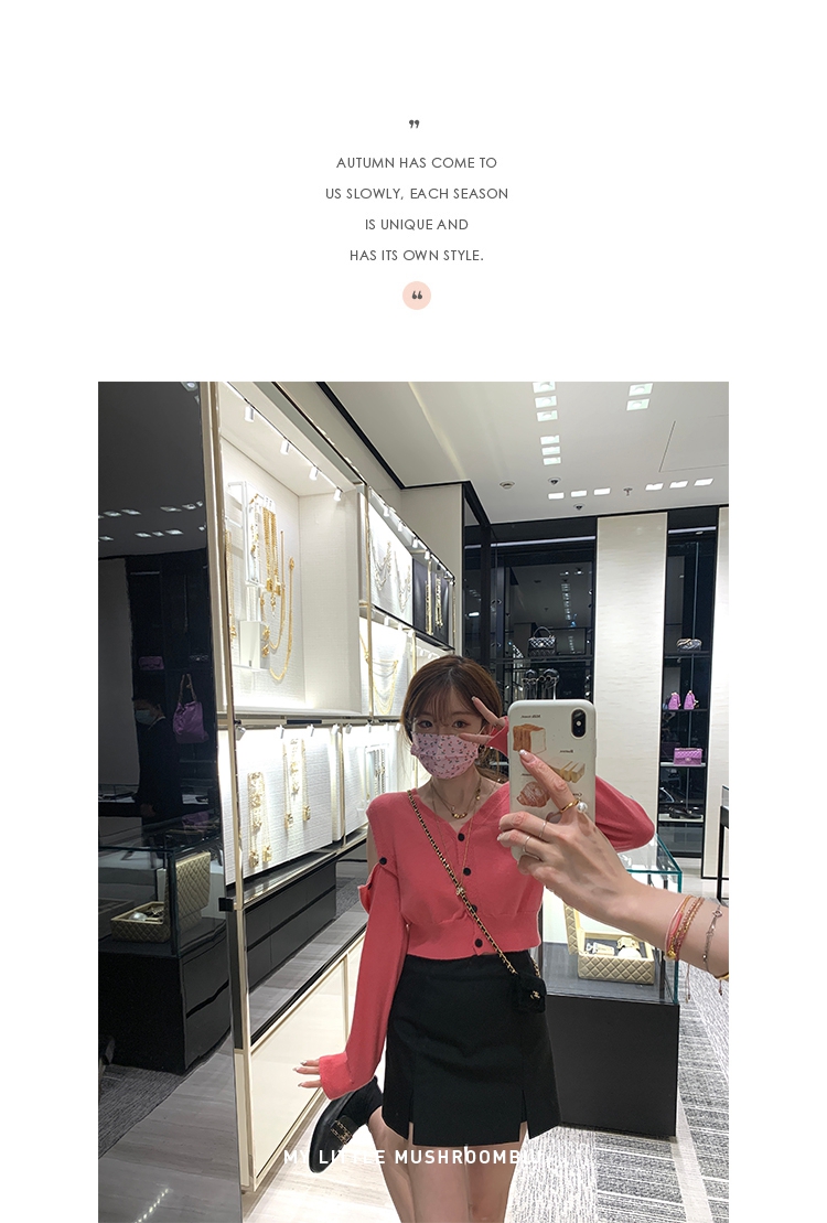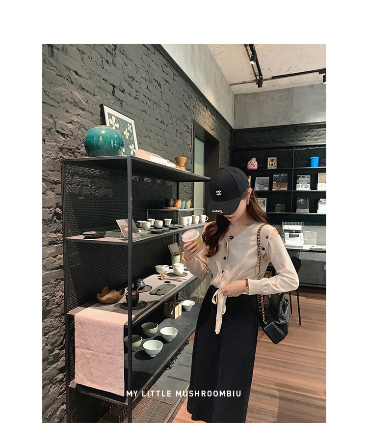 金蘑菇菇【弗洛伊德玫瑰】纸片人v领小短款设计感露肩小开衫
