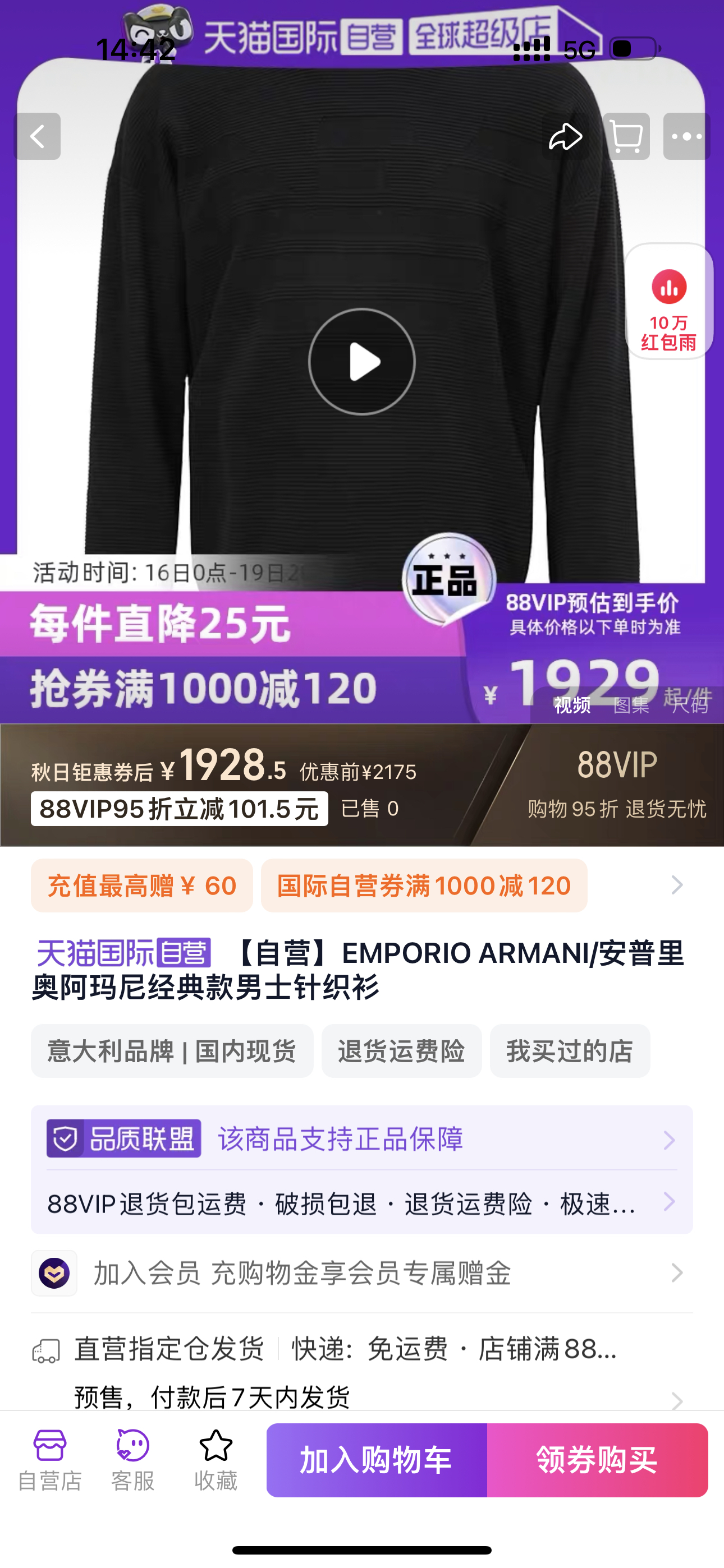 说明:去年的款。EA的毛衣很贵,当季款基本3000左右。去年款折后也要2000左右。但是东西是真的好。里面穿个白T,衬衫,甚至裸穿都很精神。随意搭配都很帅。有主标,无洗标,正品保真。价格呆萌,有码必入。