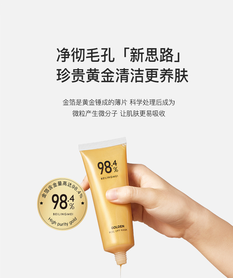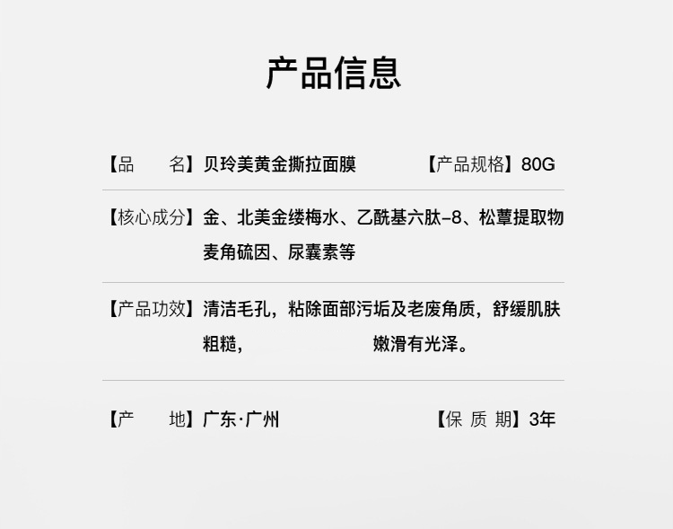 【真黄金,敷出黑白头】贝玲美黄金撕拉面膜 拔出黑头粉刺 清洁毛孔 送毛孔收缩液 80g/支