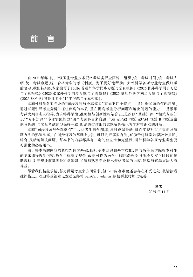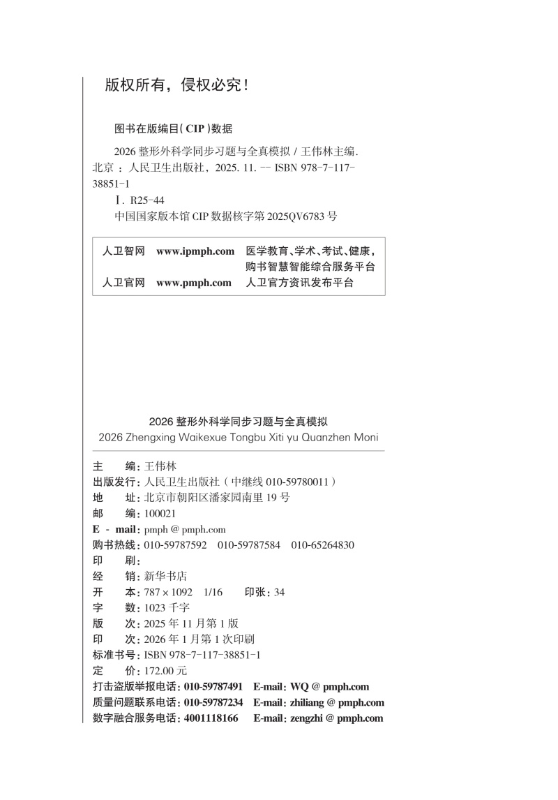 书名:2026整形外科学同步习题与全真模拟