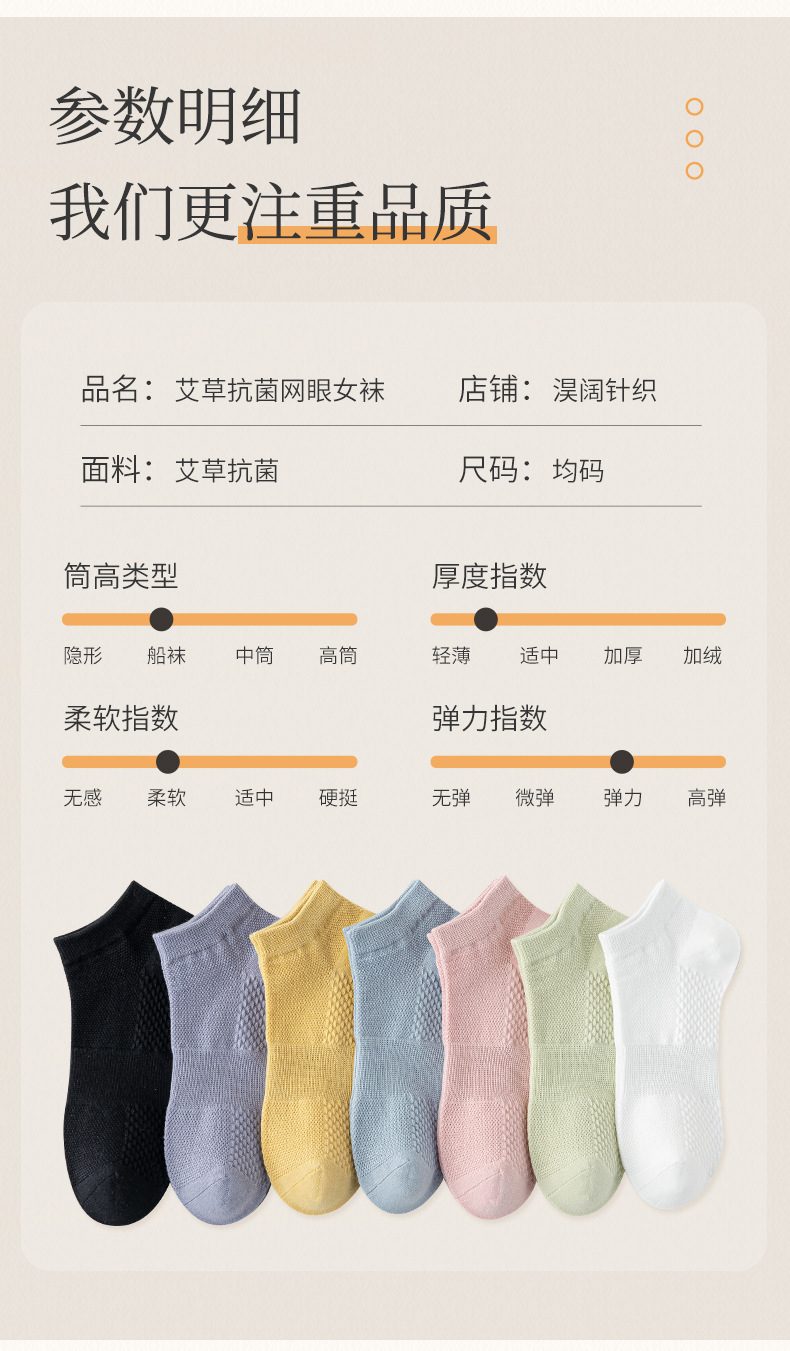 【超值10双装!艾草抗菌女袜】袜子女网眼棉袜春夏艾草精油养生抗菌防臭女袜船袜蜂窝缓震短袜女,轻柔,仿佛踩在云朵上 享受织物带来的安心感。ry