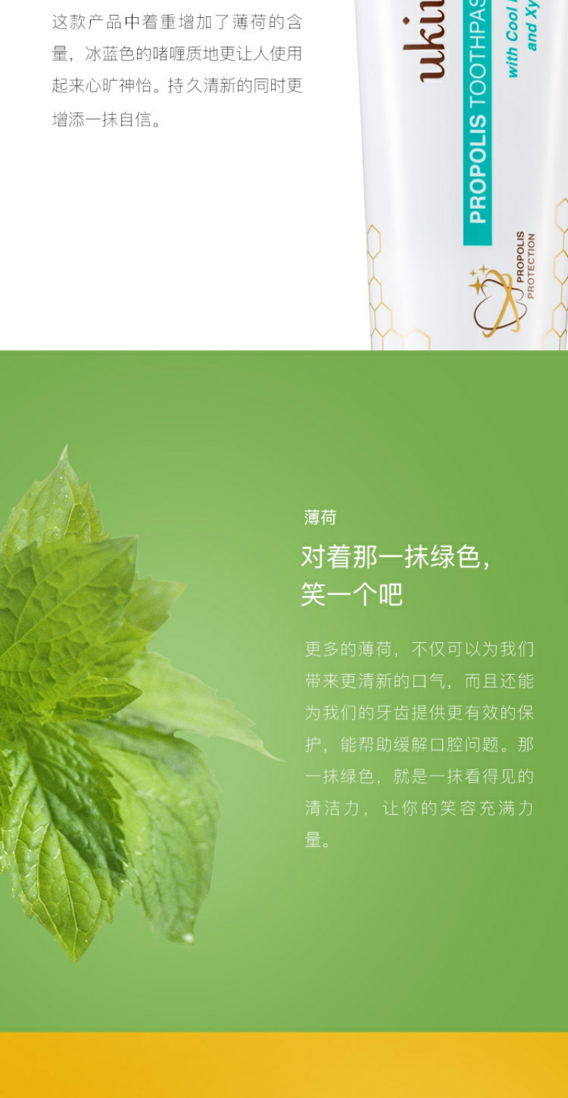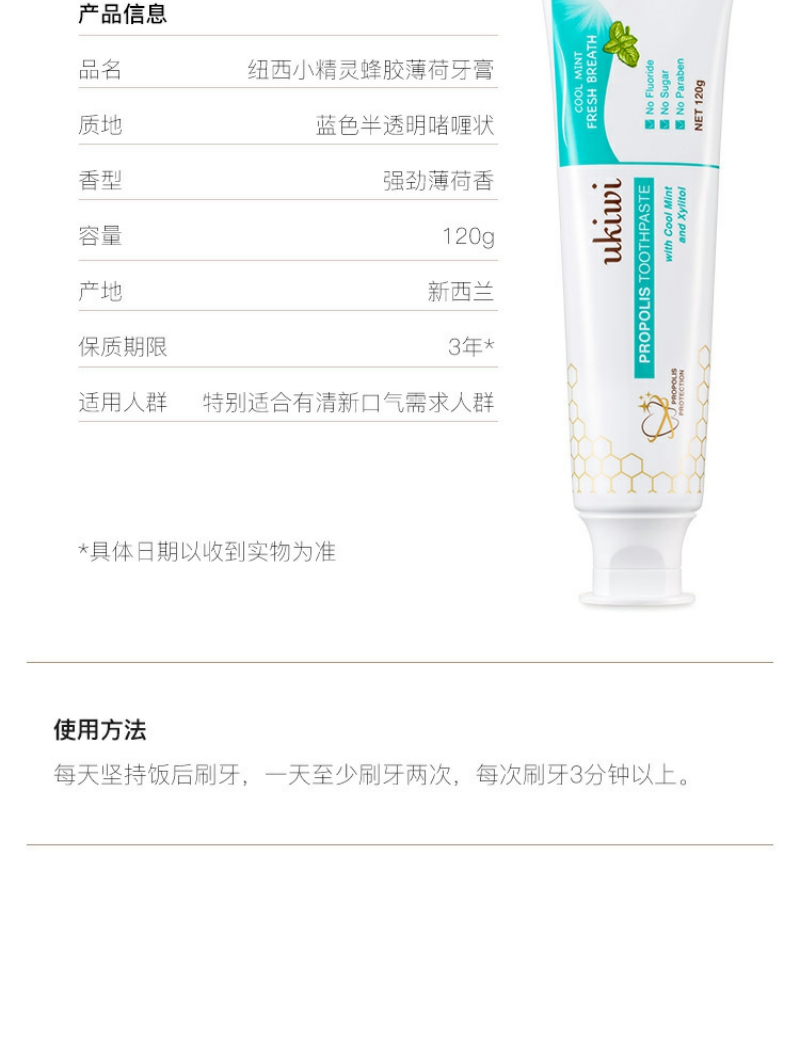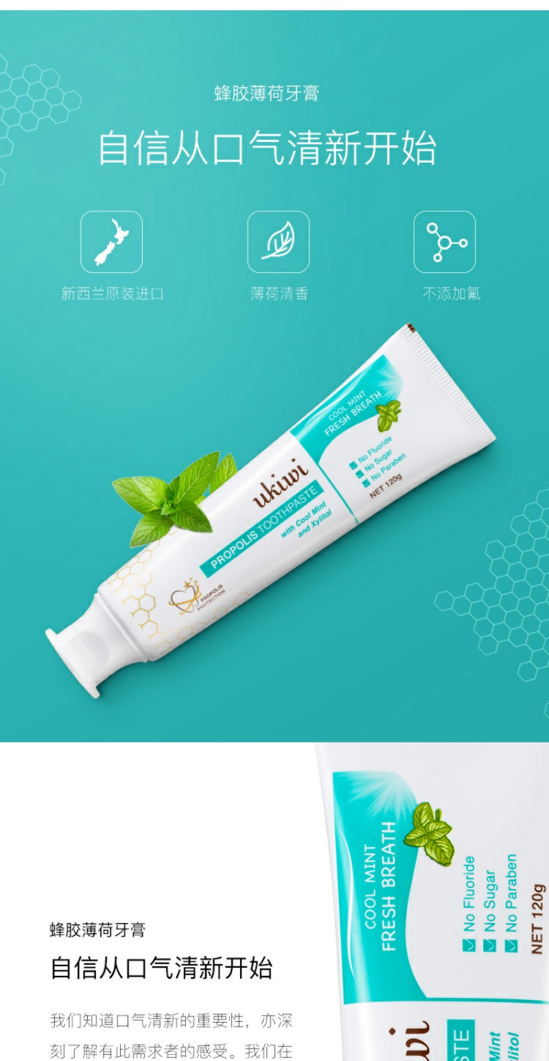 【YZ】ukiwi纽西小精灵蜂胶薄荷牙膏清新口气无氟无糖清香去渍清洁牙齿