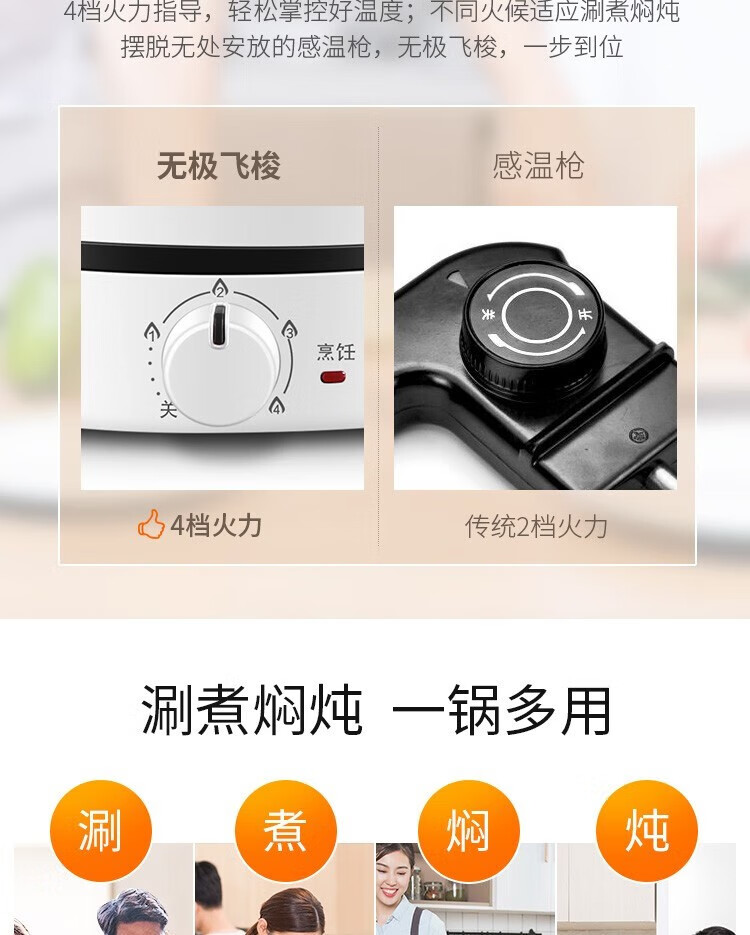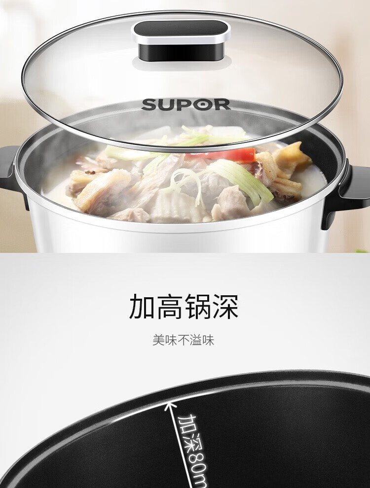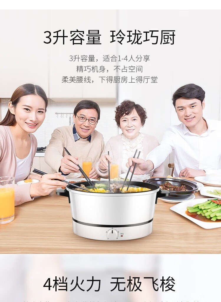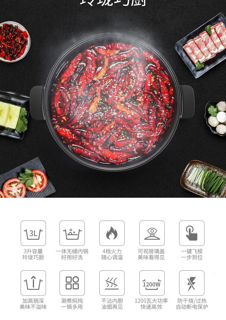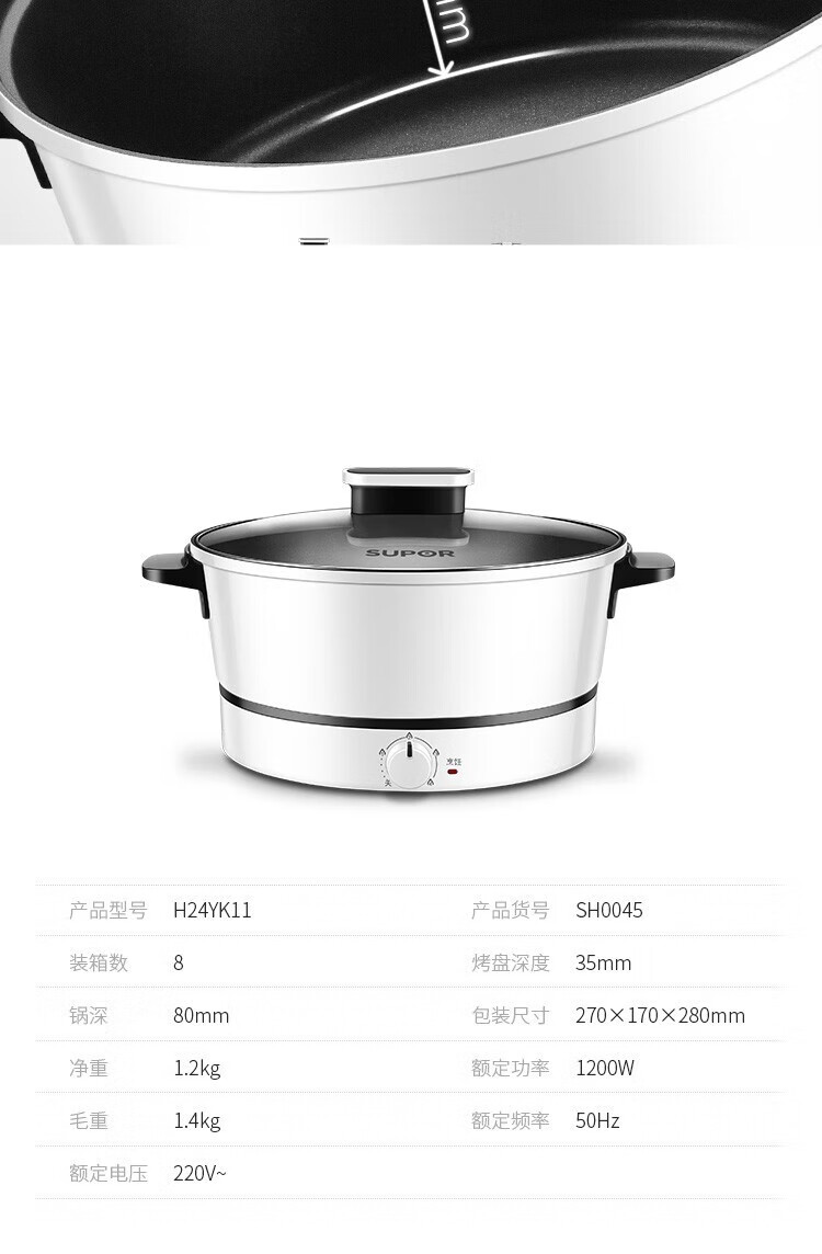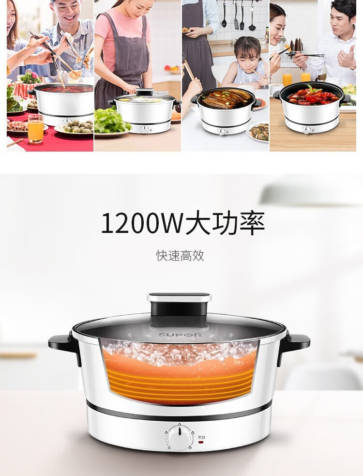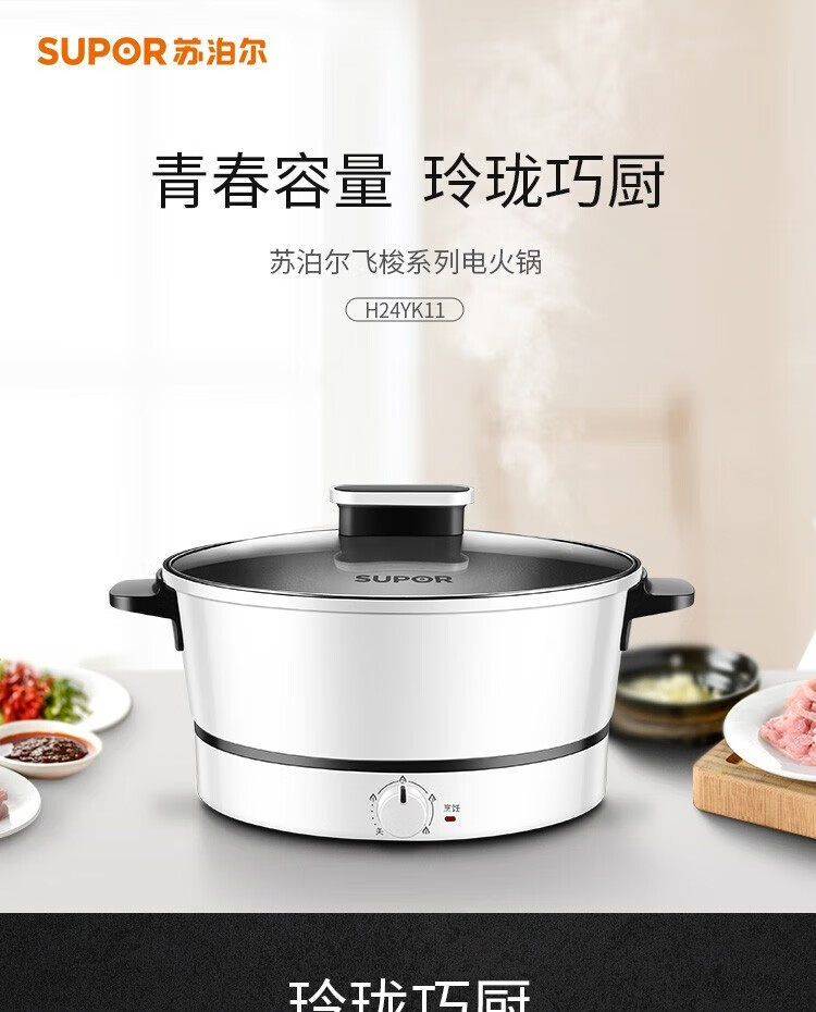 苏泊尔(SUPOR)电火锅ZMD安心系列 3L 多功能四档火力调节 不沾内胆 1200W大火力 电火锅H24YK11