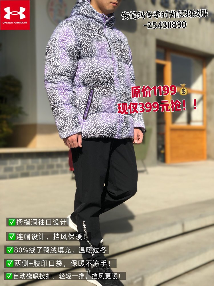 🔺第十二款:安德玛【三防面料】轻薄鸭绒保暖连帽外套253311180