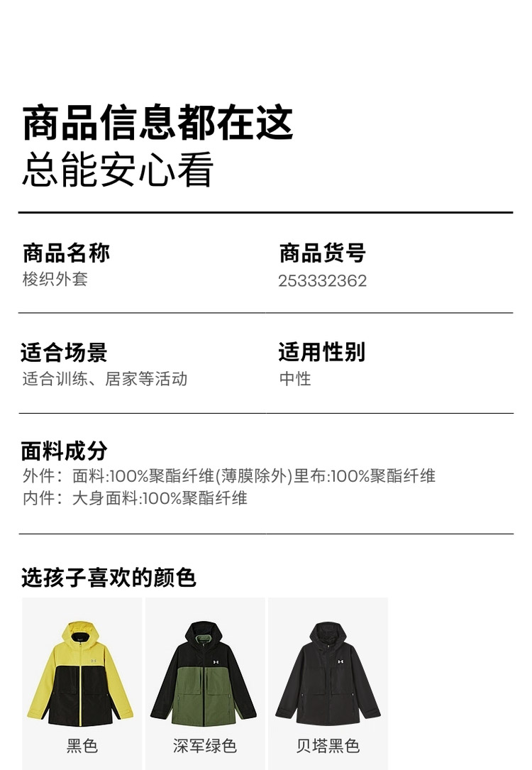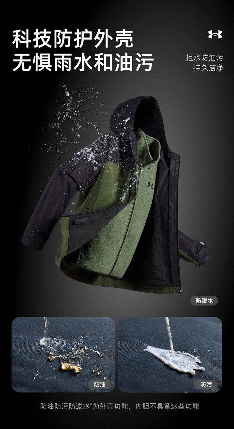 🔺第三款:秒杀福利安德玛童装三合一防泼水连帽外套244122340