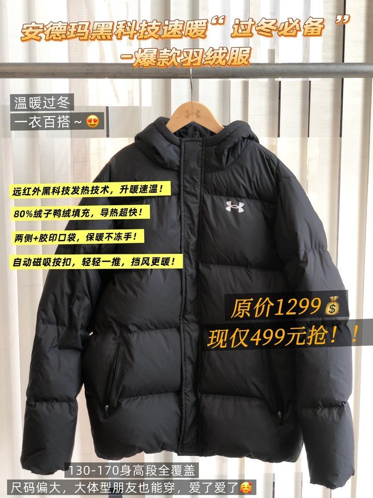 🔺第十四款:安德玛【远红外黑科技发热技术】短款加厚羽绒服254111829