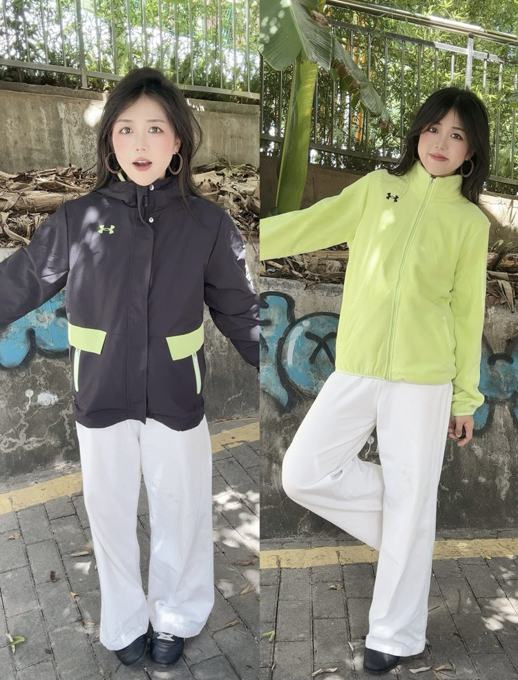 单穿内胆:在室内或天气晴好时,内胆可作为独立的抓绒衫穿着