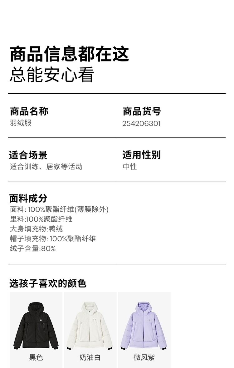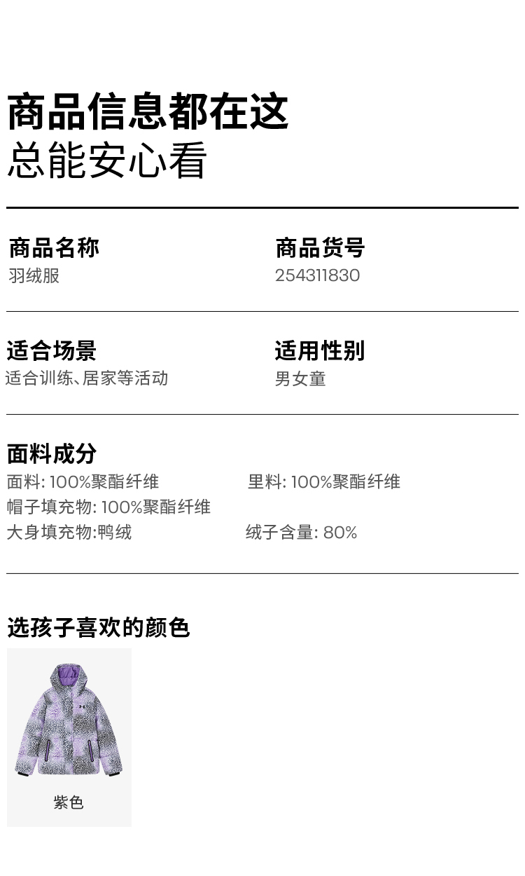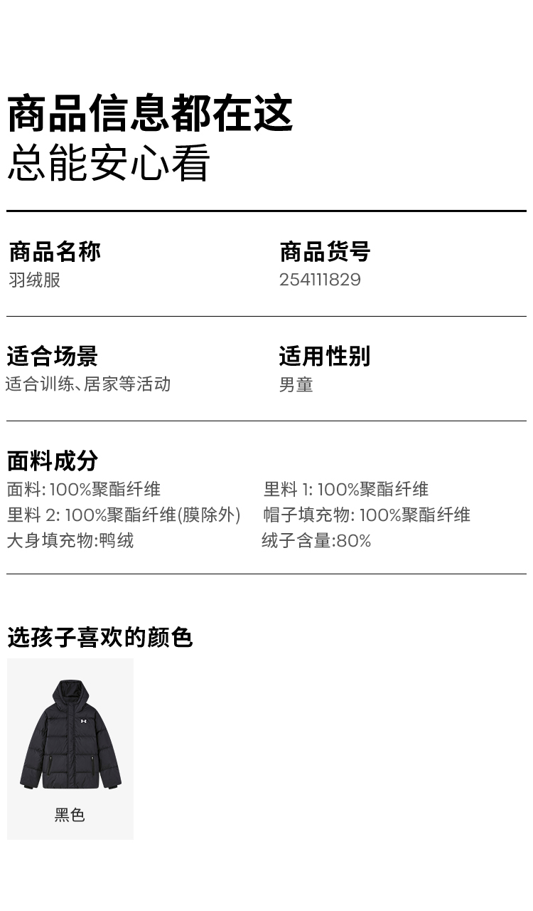 🔺第十五款:安德玛童装羽绒服254311830