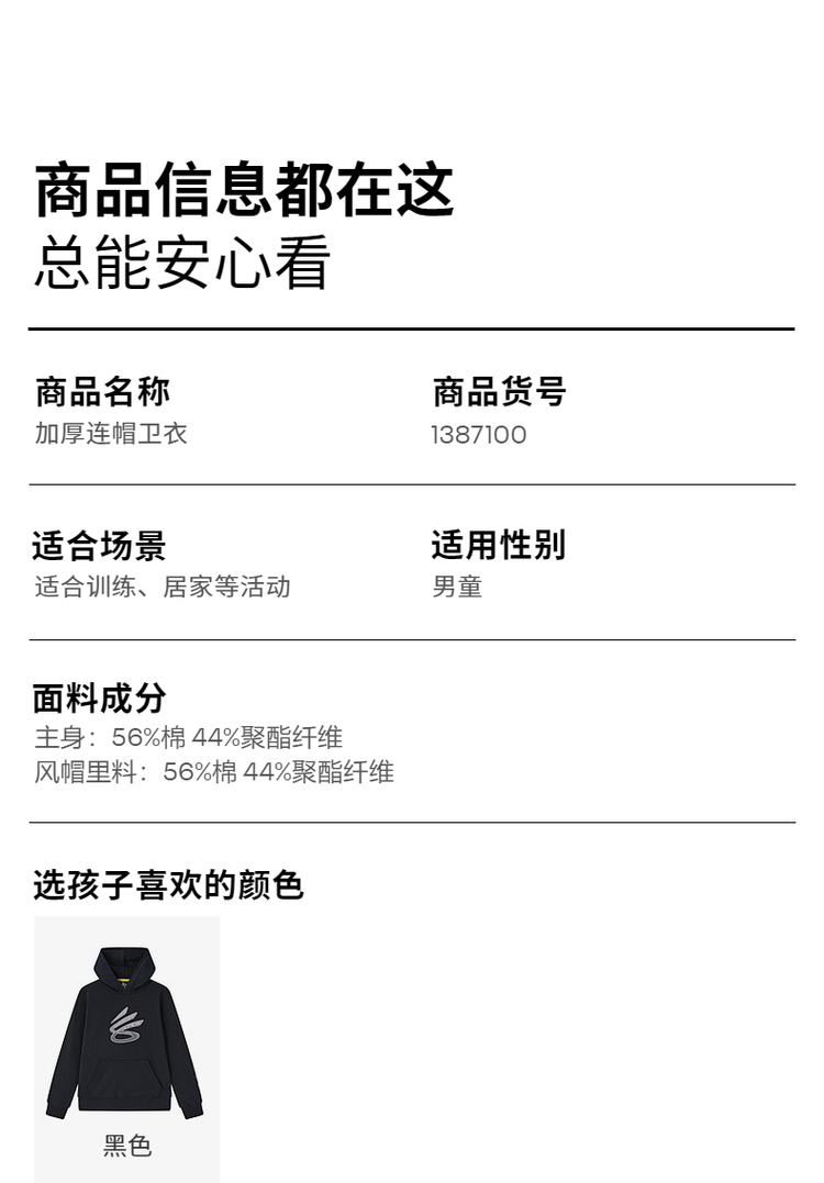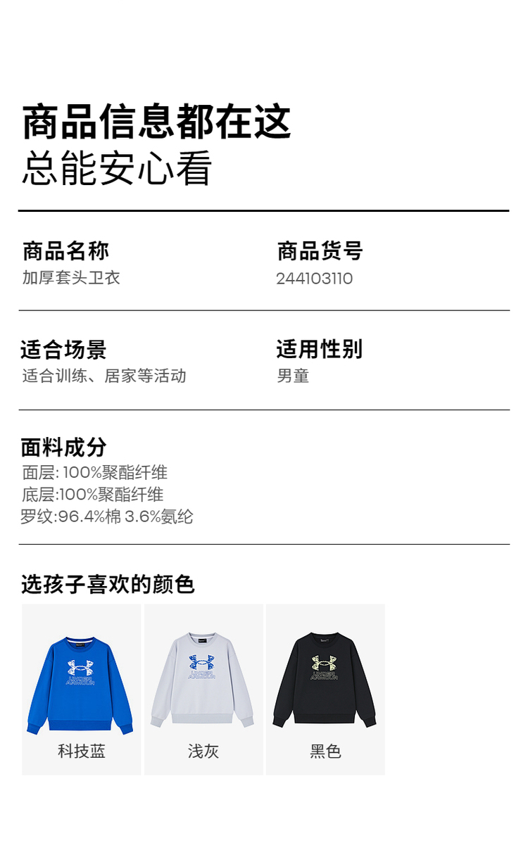 🔺第二款:秒杀福利安德玛童装圆领运动长袖舒适休闲卫衣243103380