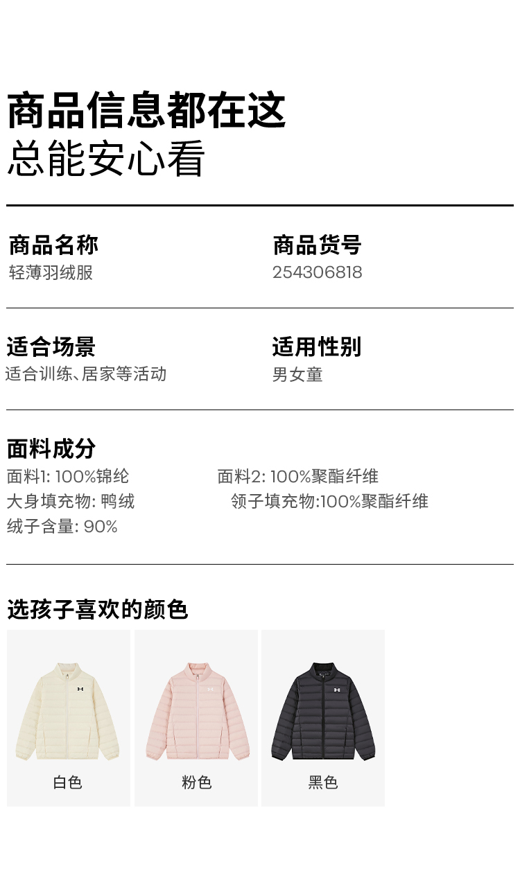 🔺第四款:秒杀福利安德玛童装综训轻薄羽绒服254306818