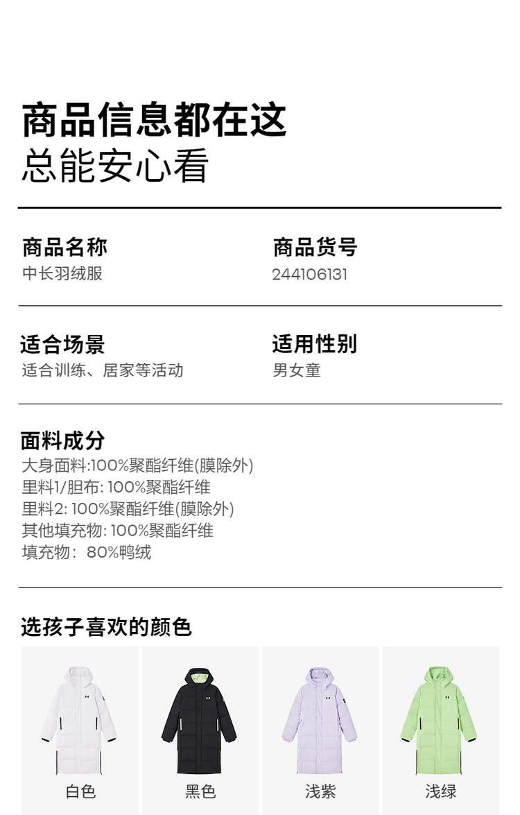 🔺第十六款:安德玛童装【中长款】防寒保暖连帽羽绒服254306117