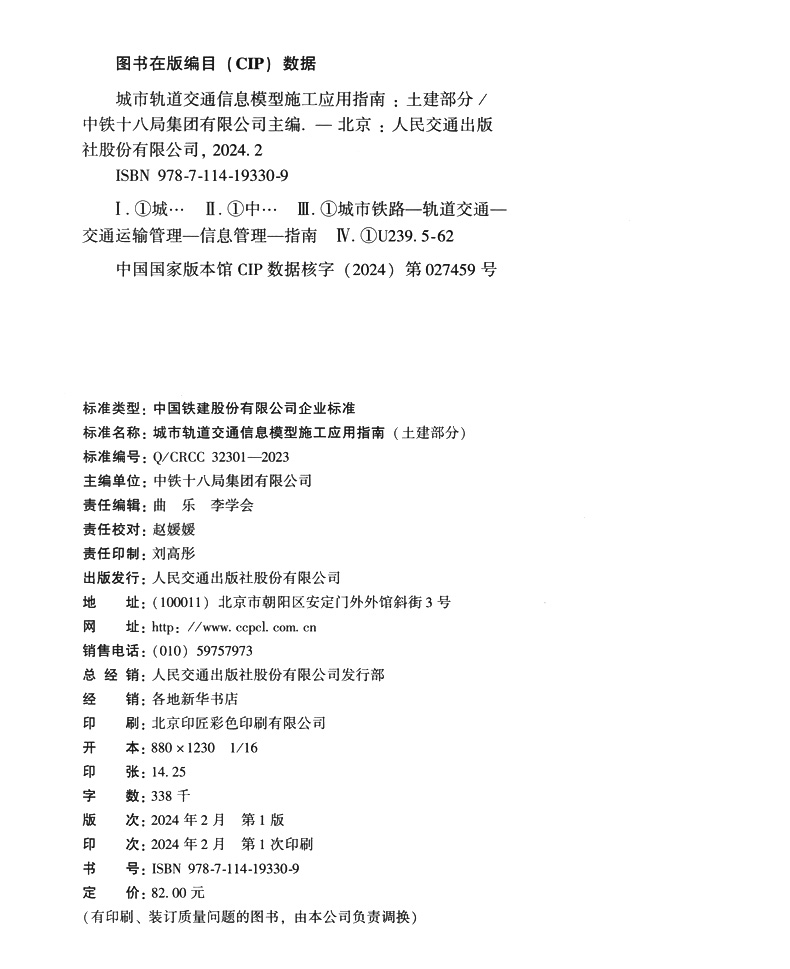 书名:城市轨道交通信息模型施工应用指南(土建部分)