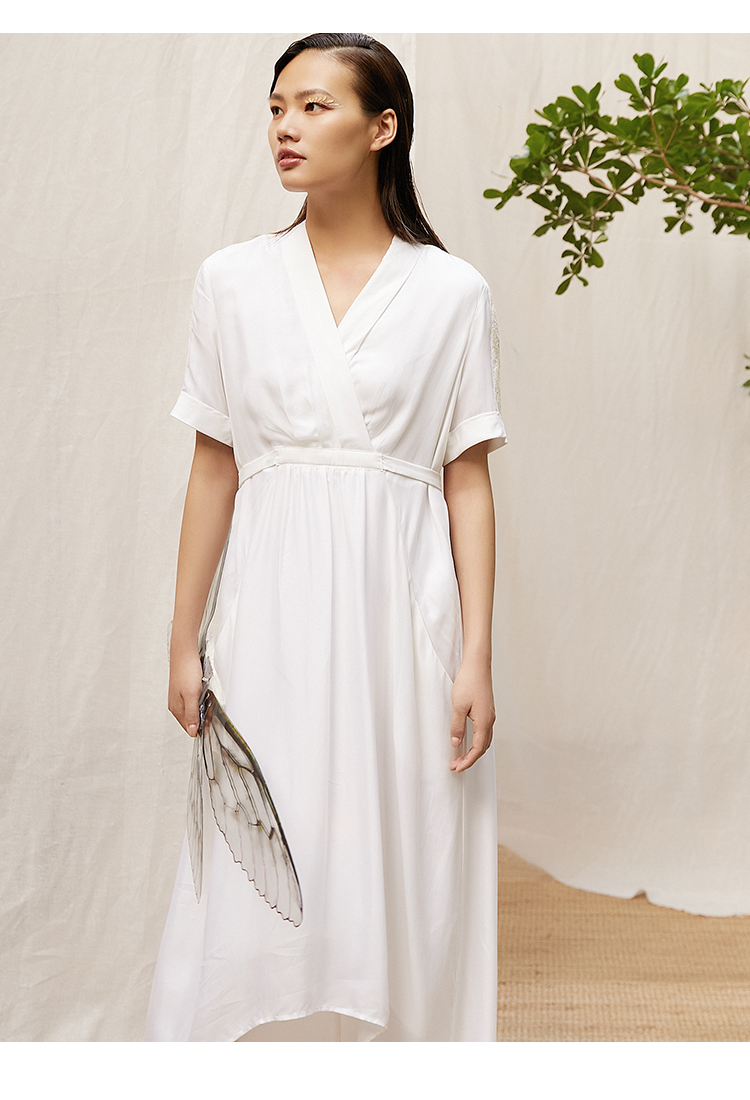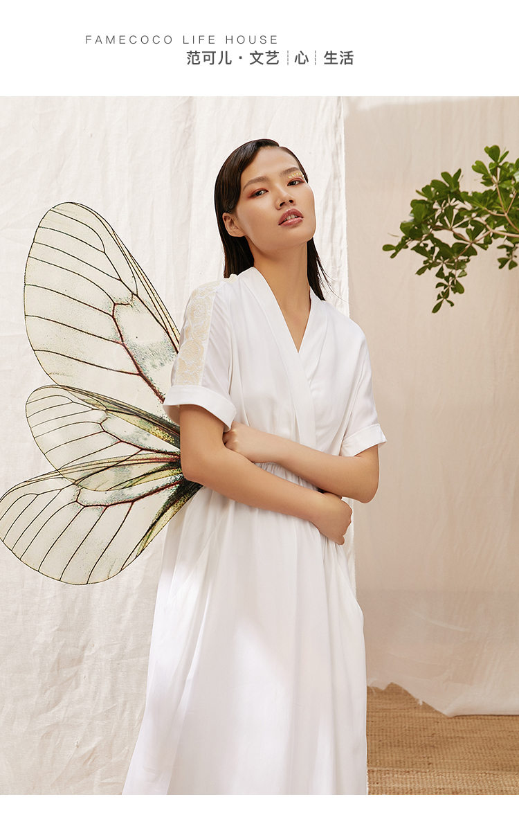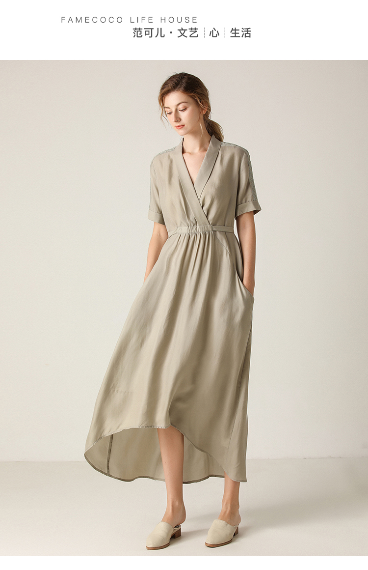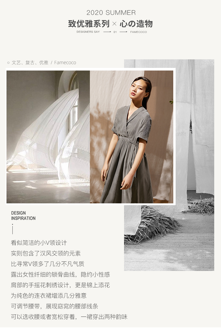 famecoco范可儿可甜可盐连衣裙夏收腰不规则V领森系气质裙子F203FA026