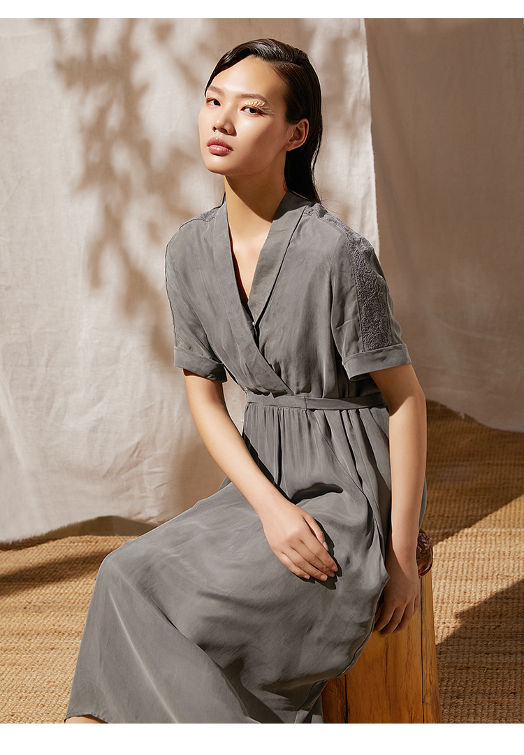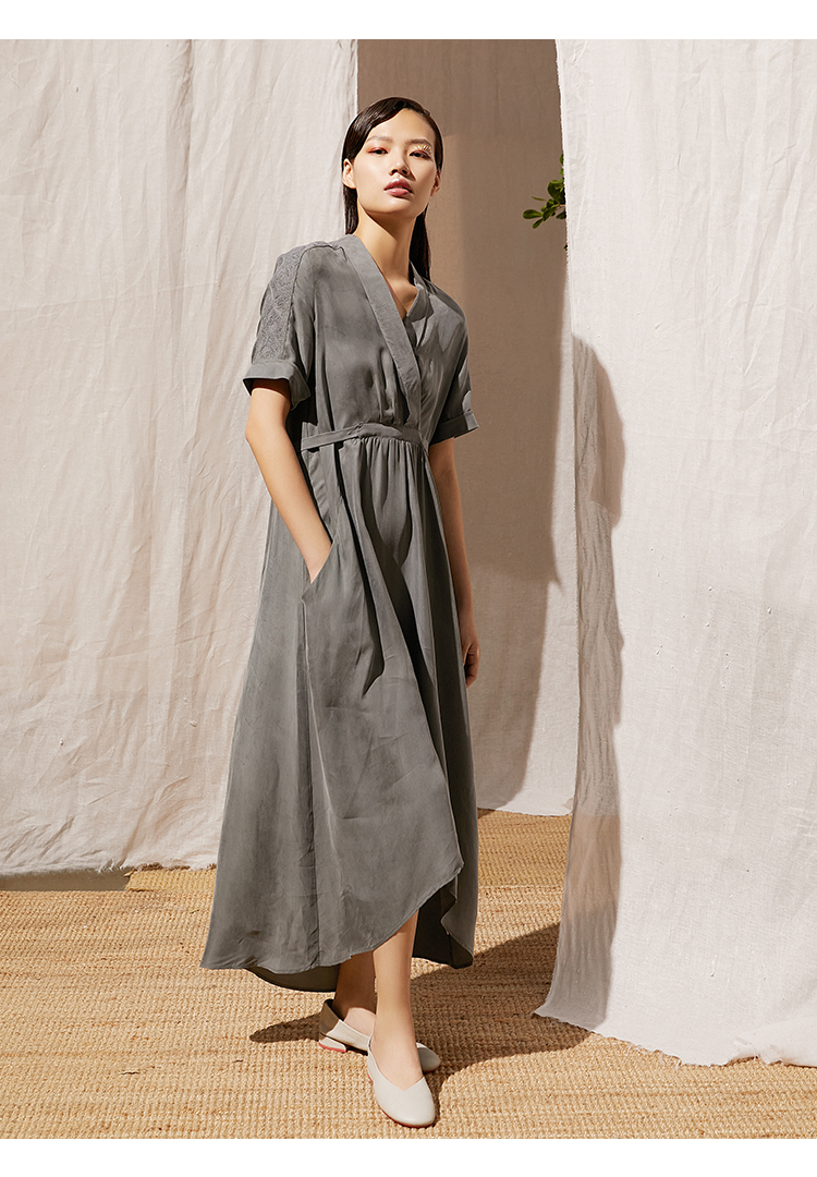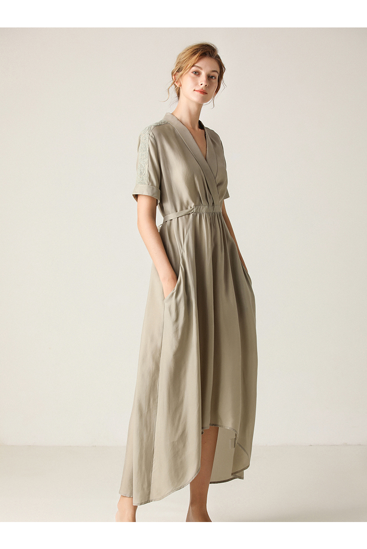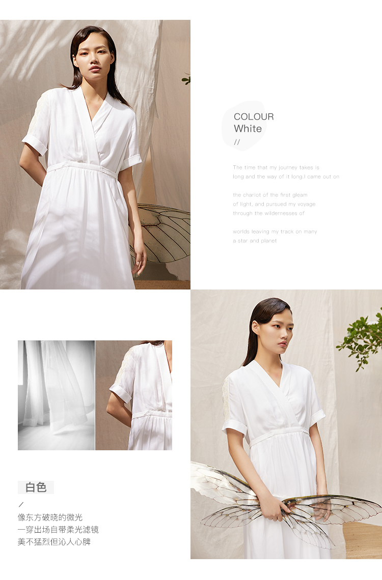 famecoco范可儿可甜可盐连衣裙夏收腰不规则V领森系气质裙子F203FA026